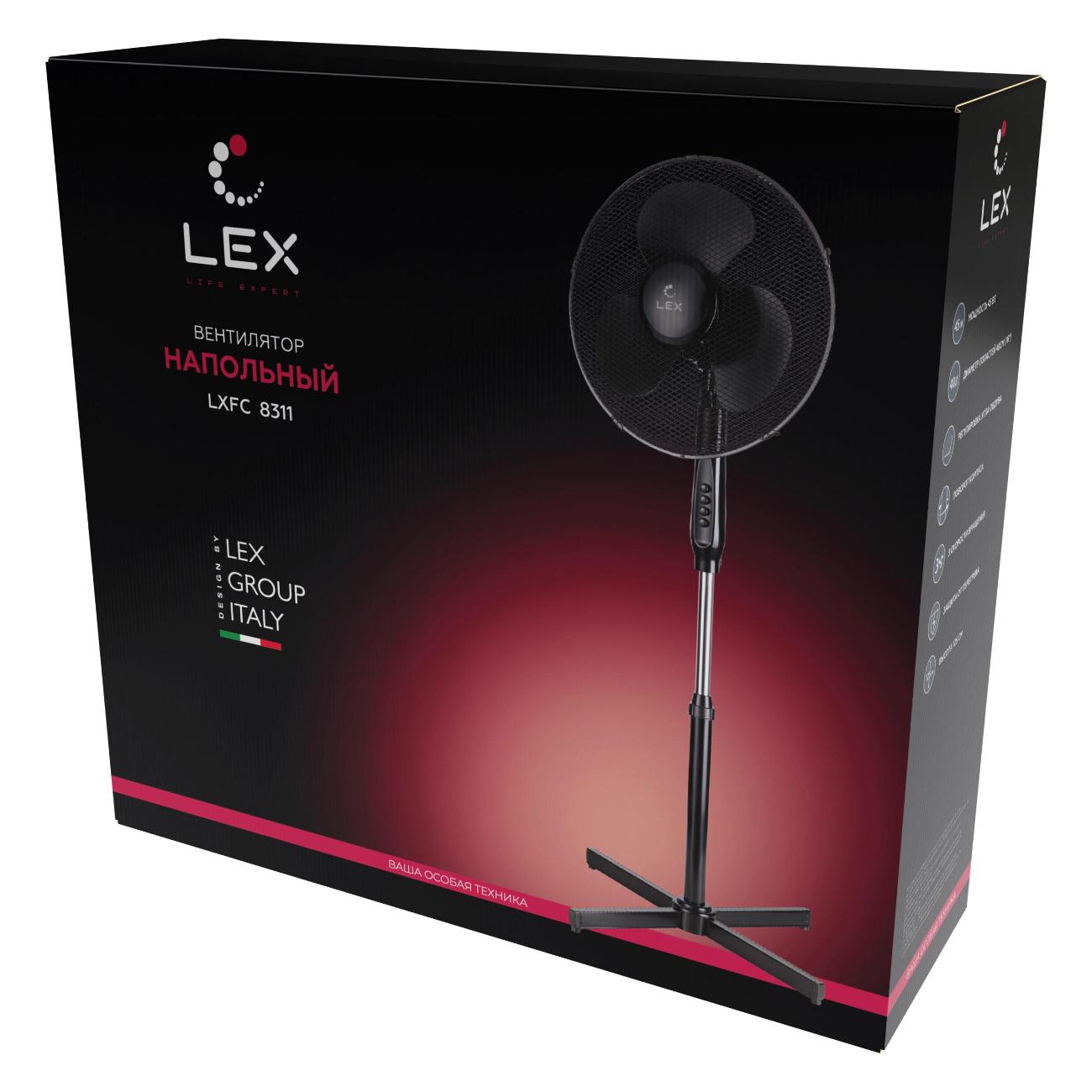 Напольный вентилятор Lex LXFC8311 представлен в прочном пластиковом корпусе, штанга, регулируемая по высоте, сделана из металла. Лопасти закрыты защитной стальной решеткой. Пластмассовое основание в виде крестовины обеспечивает устойчивое размещение устройства на полу. Уровень шума модели в процессе работы не превышает 30 дБ. Для подключения к электрической сети используется кабель питания длиной 1,5 м.
