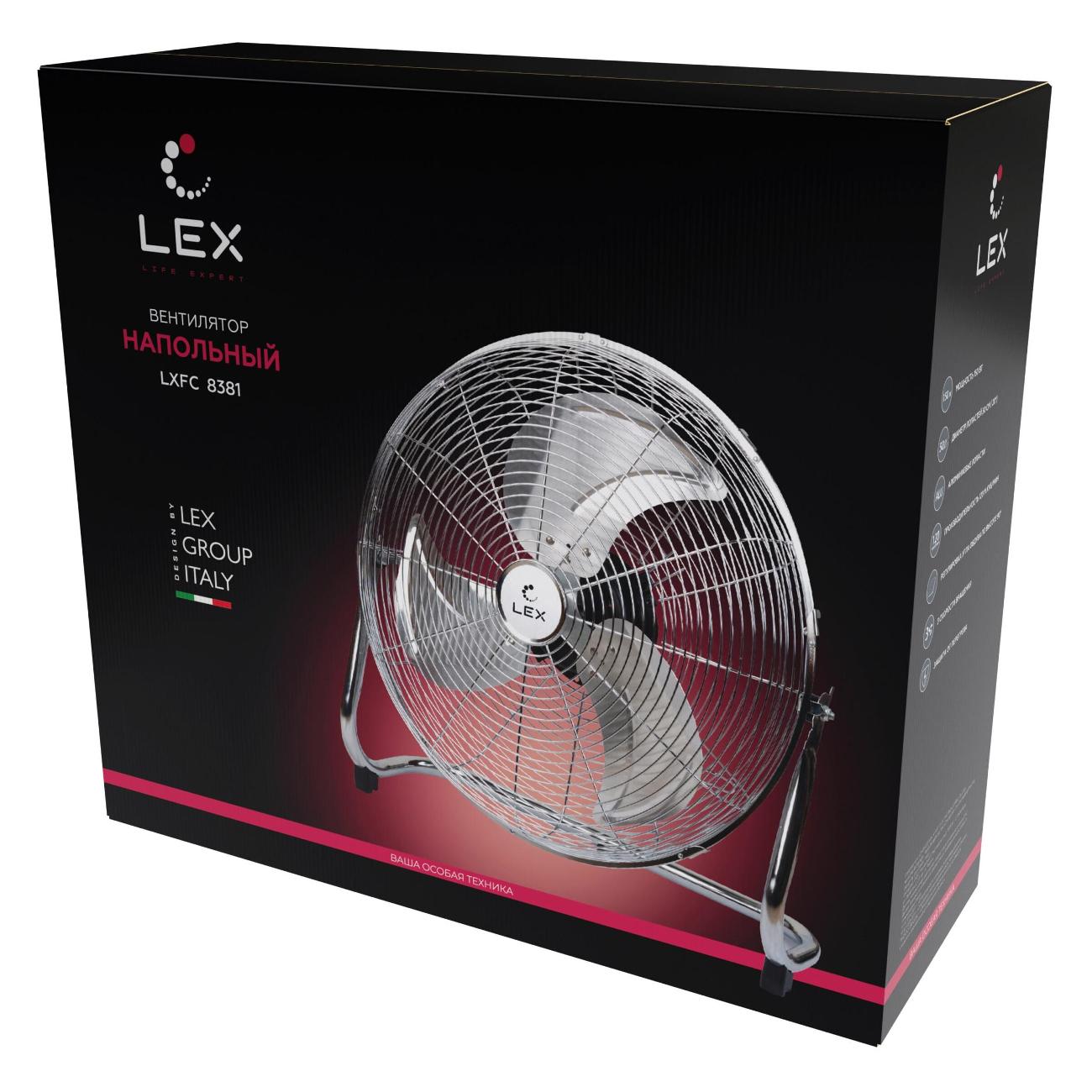 Напольный вентилятор Lex LXFC8381 мощностью 150 Вт питается от сети посредством кабеля длиной 1,5 м. Модель обеспечивает производительность 9000 м³/ч и поддерживает работу в трех режимах. Уровень шума во время функционирования не превышает 36 дБ. Металлический корпус дополнен защитной сеткой. В случае перегрева срабатывает автоматическое отключение. Вес конструкции составляет 6 кг.