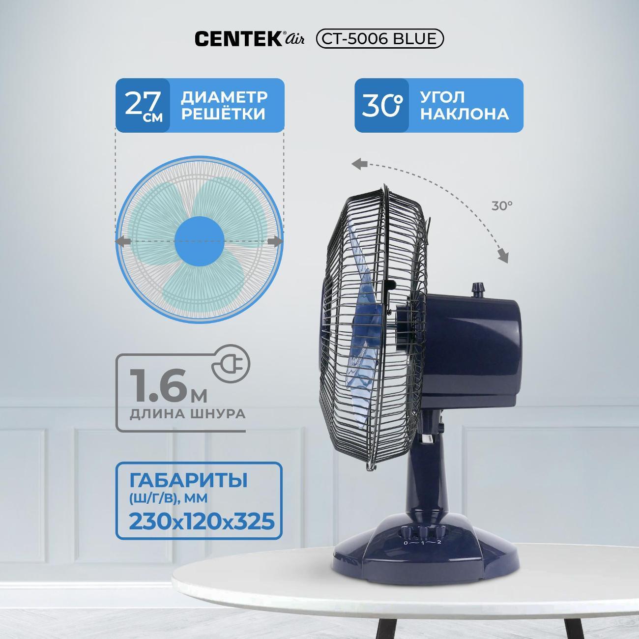 Вы можете купить Вентилятор настольный Centek CT-5006 голубой в магазинах М.Видео по доступной цене. Вентилятор настольный Centek CT-5006 голубой: подробное описание, фото и отзывы реальных покупателей, характеристики, возможность скачать инструкции и подобрать аксессуары.