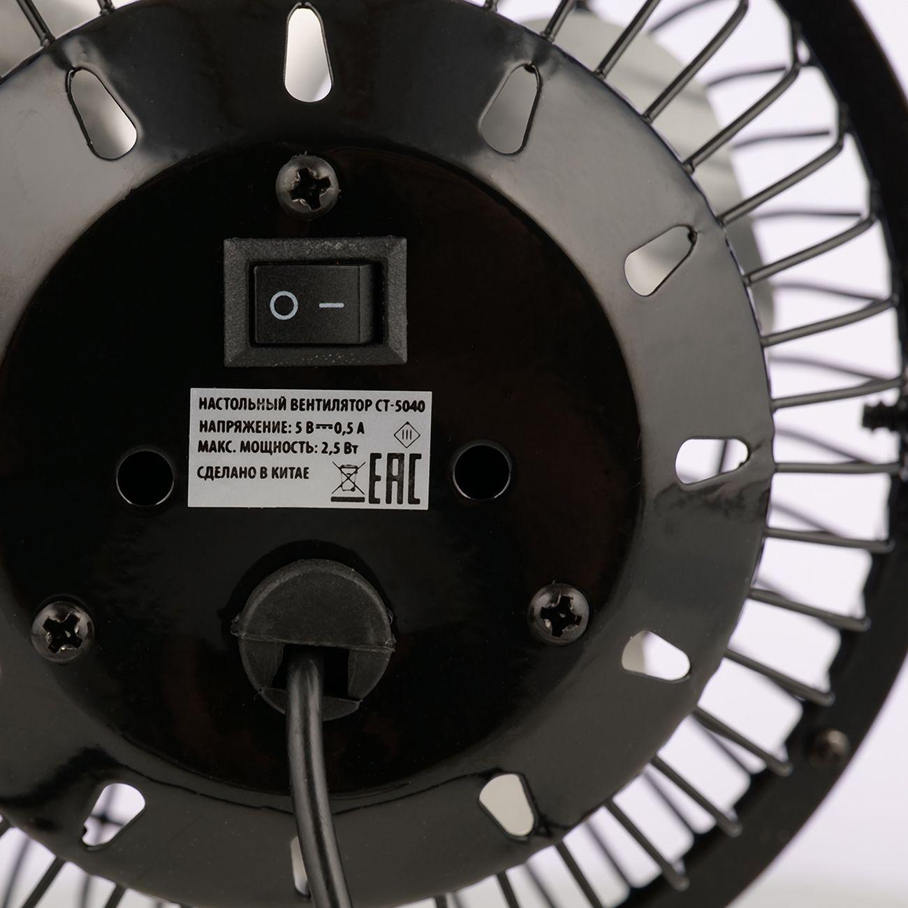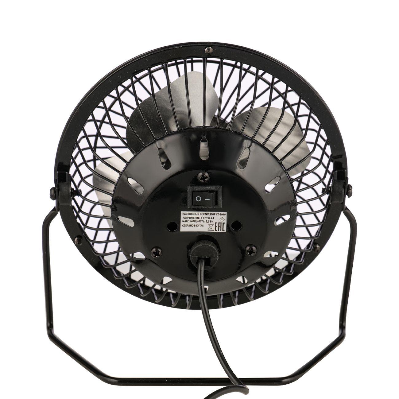 Centek CT-5040 — миниатюрный настольный вентилятор с 14-сантиметровыми моторным блоком. Эта модель подходит для применения в ограниченном пространстве. Рабочая часть закреплена на металлическом каркасе с прорезиненными накладками. Прибор устойчив на поверхностях любого типа.