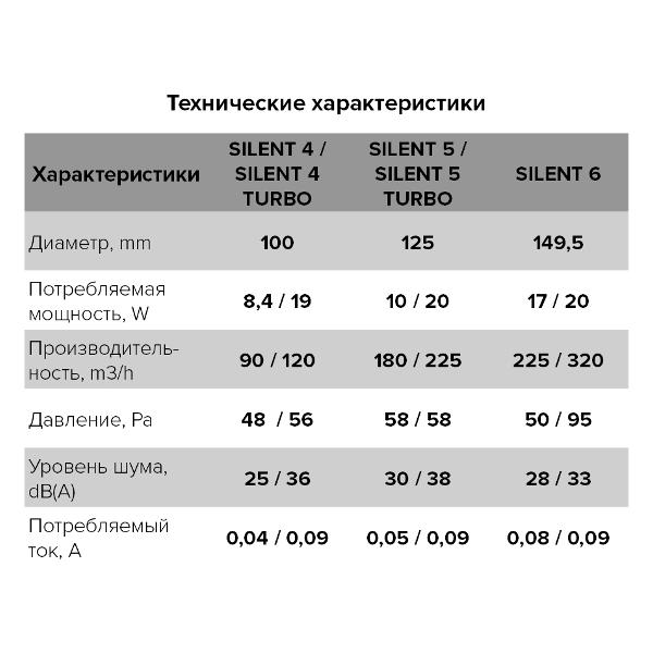 Вентилятор вытяжной DiCiTi Silent 5C MR с таймером и обратным клапаном не позволяет проникнуть неприятным запахам в помещение. Уровень шума достигает 30 дБ. Его производительность равна 180 м³ в час. Двигатель на шарикоподшипниках способен работать до 40 000 ч. Он дополнен светодиодом, который загорается при включении прибора.