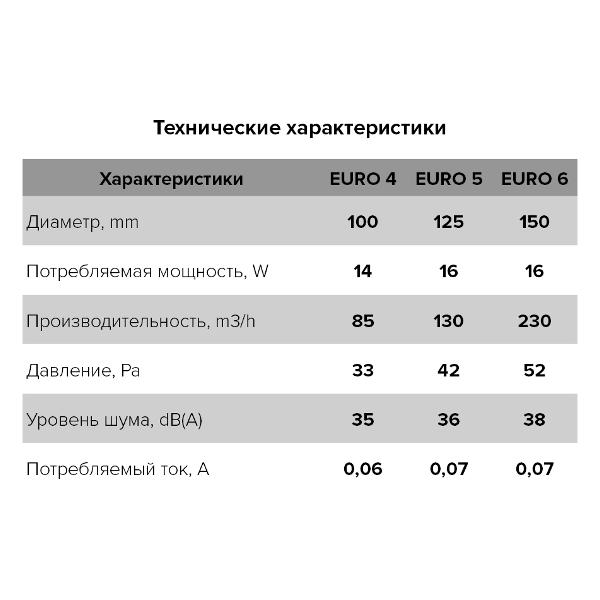 Вентилятор поставляется с крепежным комплектом, благодаря которому его легко самостоятельно установить. Диаметр воздуховода составляет 150 мм. Осевой рабочий механизм.