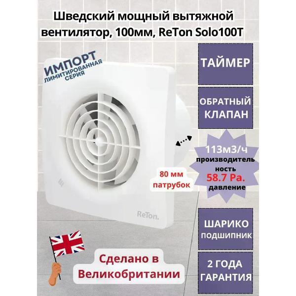 Вы можете купить Вентилятор вытяжной ReTon Solo 100T в магазинах М.Видео по доступной цене. Вентилятор вытяжной ReTon Solo 100T: подробное описание, фото и отзывы реальных покупателей, характеристики, возможность скачать инструкции и подобрать аксессуары.