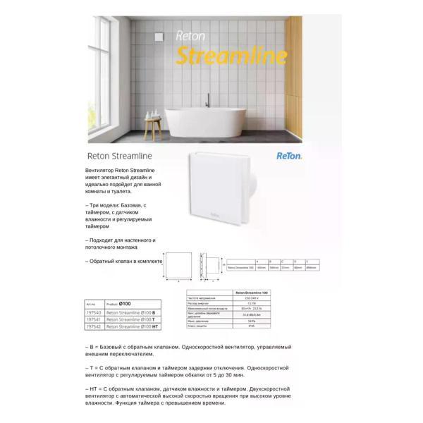 Вы можете купить Вентилятор вытяжной ReTon Streamline 100T в магазинах М.Видео по доступной цене. Вентилятор вытяжной ReTon Streamline 100T: подробное описание, фото и отзывы реальных покупателей, характеристики, возможность скачать инструкции и подобрать аксессуары.