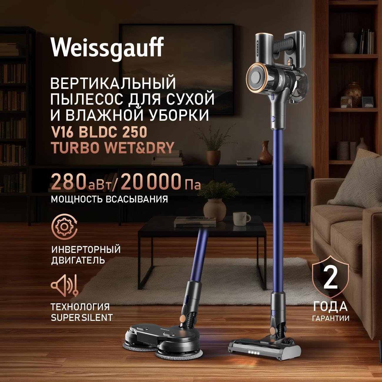Вы можете купить Вертикальный беспроводной пылесос сухой и влажной уборки (2 в 1) Weissgauff V16 BLDC 250 Turbo Wet&Dry в магазинах М.Видео по доступной цене. Вертикальный беспроводной пылесос сухой и влажной уборки (2 в 1) Weissgauff V16 BLDC 250 Turbo Wet&Dry: подробное описание, фото и отзывы реальных покупателей, характеристики, возможность скачать инструкции и подобрать аксессуары.