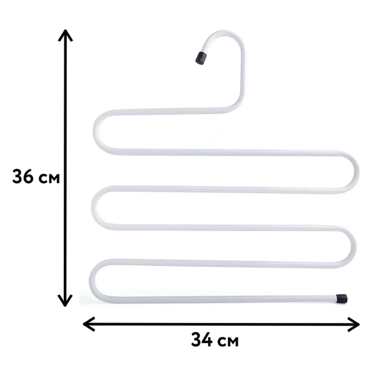 Предлагаем универсальную металлическую вешалку, которая поможет организовать пространство и создаст уют в доме. Вешалки для одежды изготовлены из прочного металла. Многоуровневая вешалка для брюк эстетичной изогнутой формы выдерживает до 6 кг благодаря усиленному металлическому профилю. Она не погнется даже под тяжестью зимних штанов или мокрых полотенец. Пластиковые заглушки на концах не позволят соскальзывать одежде с вешалки, а самому аксессуару с перекладины шкафа. Вешалка компактная и не занимает много места - ее размер 34 на 36 см. При этом на одной такой вешалке можно разместить до 5 предметов одежды. Подойдет для брюк, женских и мужских шарфов, широких декоративных шейных платков, галстуков и других аксессуаров гардероба. Вешалку "Змейка" можно использовать как для взрослой, так и для детской одежды.