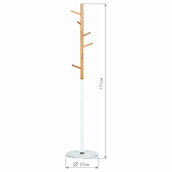 Верхняя часть вешалки-стойки выполнена из натурального бука, 6 крючков расположены "по спирали", что позволяет компактно разместить верхнюю одежду. Максимальная нагрузка на вешалку - 20 кг.