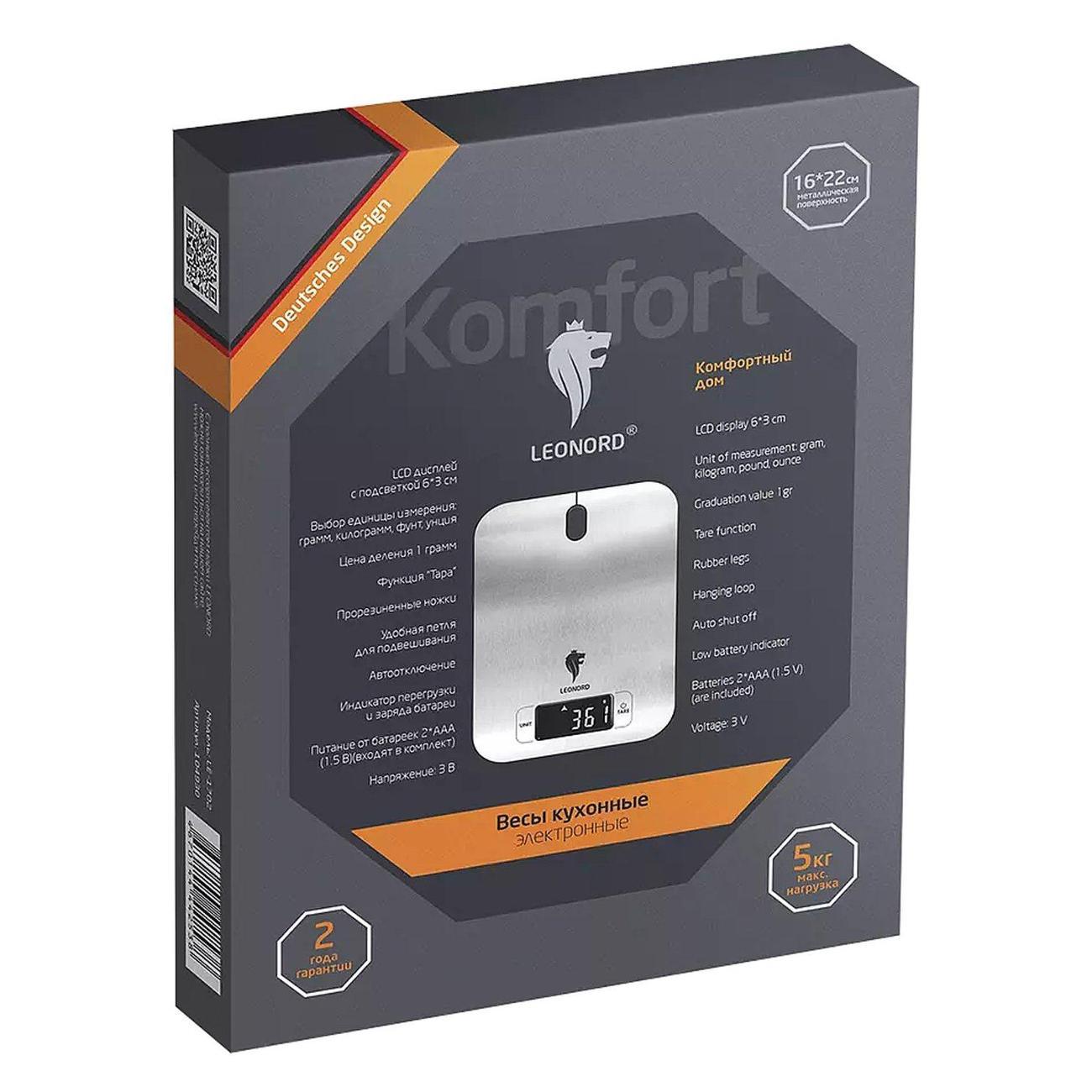 Вы можете купить Весы кухонные Leonord LE-1705 105021 в магазинах М.Видео по доступной цене. Весы кухонные Leonord LE-1705 105021: подробное описание, фото и отзывы реальных покупателей, характеристики, возможность скачать инструкции и подобрать аксессуары.