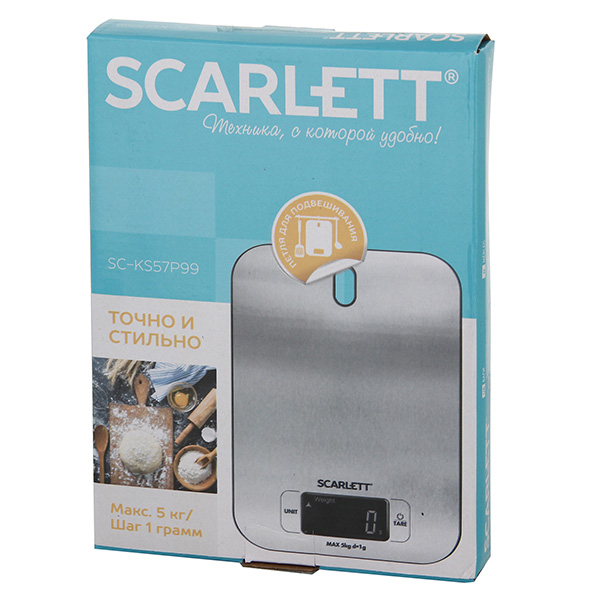 Кухонные весы Scarlett SC - KS57P99 подходят для измерения массы любых продуктов, включая специи, соль и другие подобные ингредиенты. Применение современной конструкции с четырьмя высокочувствительными сенсорами позволяет им получать результат с погрешностью не более 1 грамма.