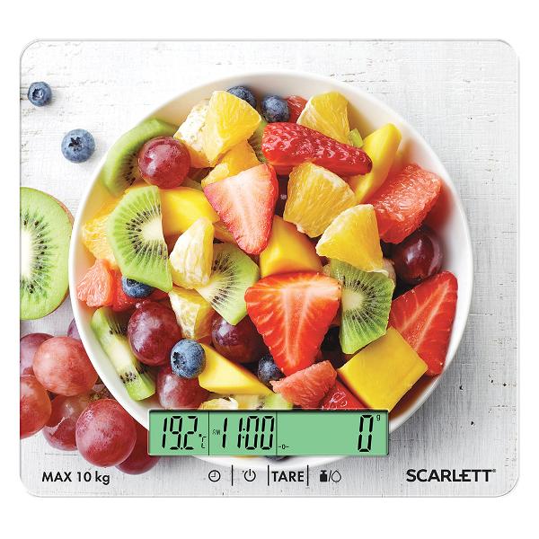 Кухонные весы Scarlett SC-KS57P48 оборудованы платформой из закаленного стекла с ярким дизайном. Прибор определяет вес продуктов не более 10 кг. Измерения выводятся в граммах, килограммах, фунтах, унциях, миллилитрах. Параметры отображаются на жидкокристаллическом экране.