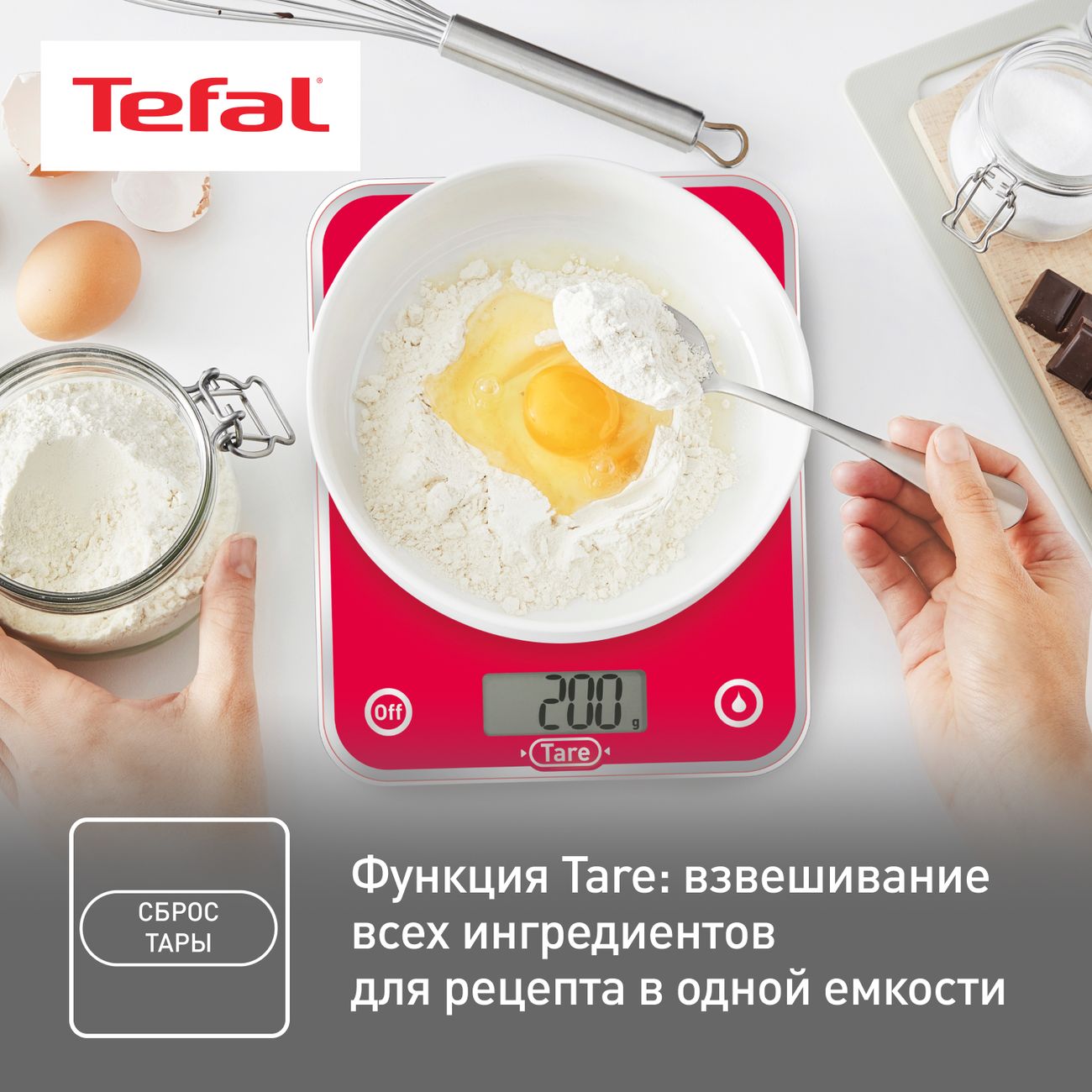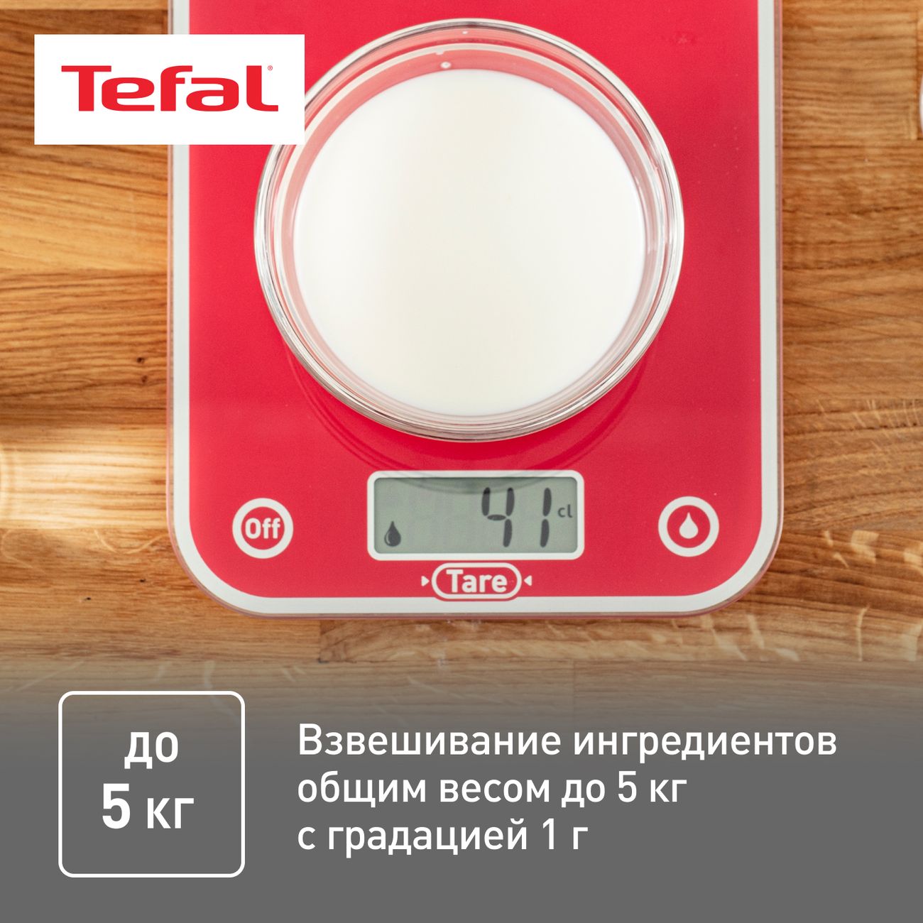 Нам очень повезло, что это оказалась продукция именно Tefal! Весы этой фирмы, правда, очень понравились. Для начала хочется сказать, что модель очень красивая. Все надписи, сделанные на платформе, хорошо видны, они зеркальные, а сама поверхность произведена из стекла. Использование прибора реально доставляет эстетическое удовольствие. У них еще есть серия с рисунками. У весов есть три кнопки, слева направо: включение, tare - позволяет вычитать тару и пользоваться последовательным взвешиванием, и кнопка для переключения мер.