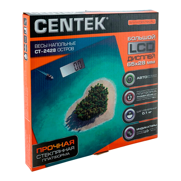 Новая модель напольных весов Centek CT-2428 «Остров» поможет вам в контроле за собственным весом. Прибор станет надёжным помощником для людей, следящих за фигурой и соблюдающих диету.