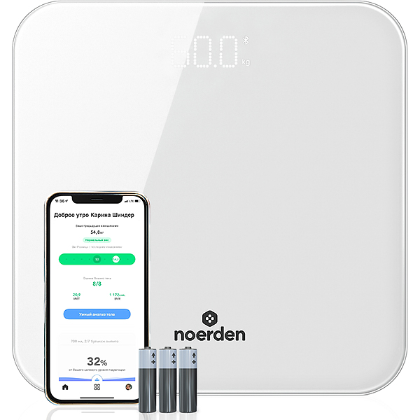 Есть нюанс с передачей данных на телефон, она не происходит в совсем автоматическом режиме, нужно запустить приложение NOERDEN на телефоне и нажать кнопку Умный анализ тела, затем встать на весы и показание передается в телефон. В целом мне не сложно, но думала, если телефон включен, и я встану на весы, то показания автоматом передадутся )