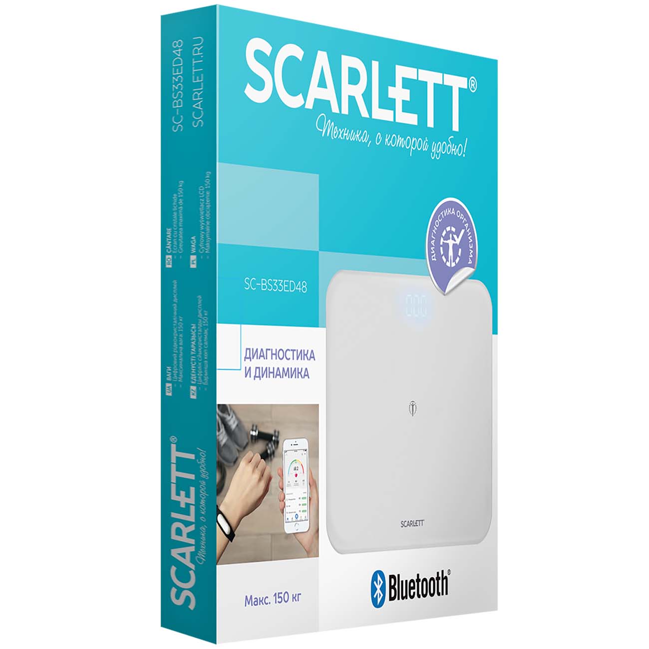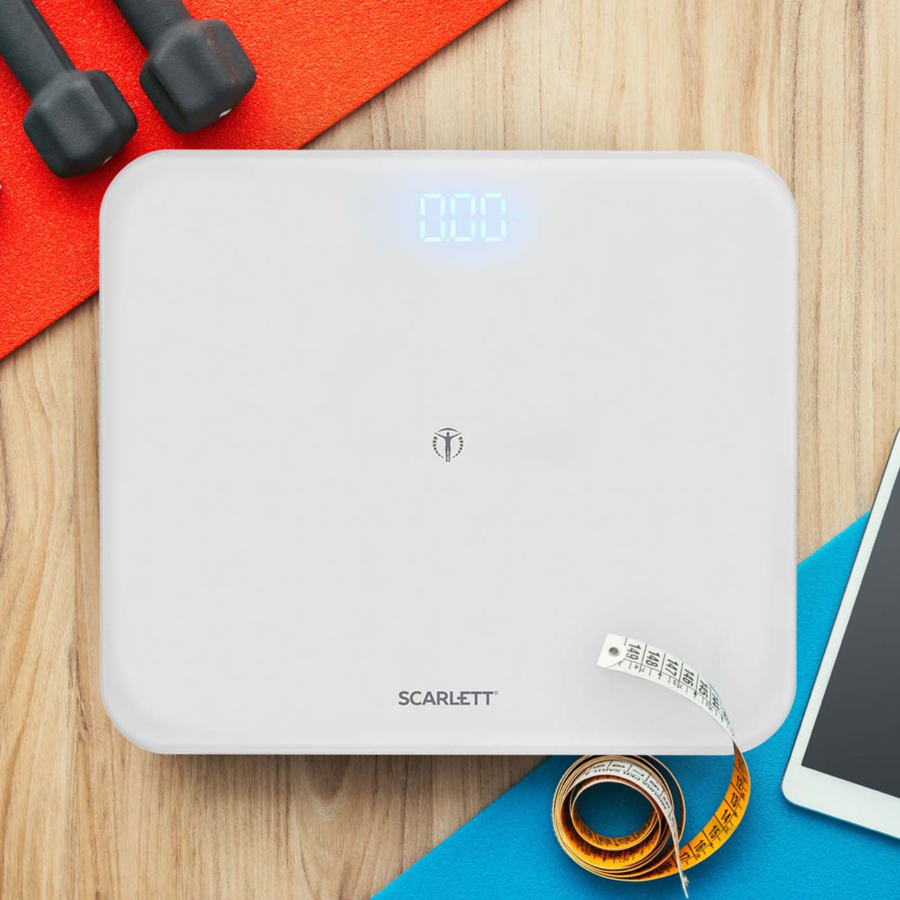Напольные весы Scarlett SC-BS33ED48 умеют не только определять массу тела, но и вычислять процент жира и воды, высчитывать индекс BMI и отправлять эти данные в приложение на смартфоне по протоколу Bluetooth.