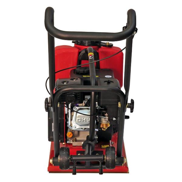 Модель снабжена удобной в применении и хранении складной рукояткой. Антивибрационная система двигателя избавляет от неприятных ощущений и обеспечивает комфортную работу. Усиленная рама из стали отличается повышенной устойчивостью к механическим повреждениям. Корпус окрашен в черный и красный цвета. Размеры виброплатформы составляют 61х38х75 см, вес — 60 кг.