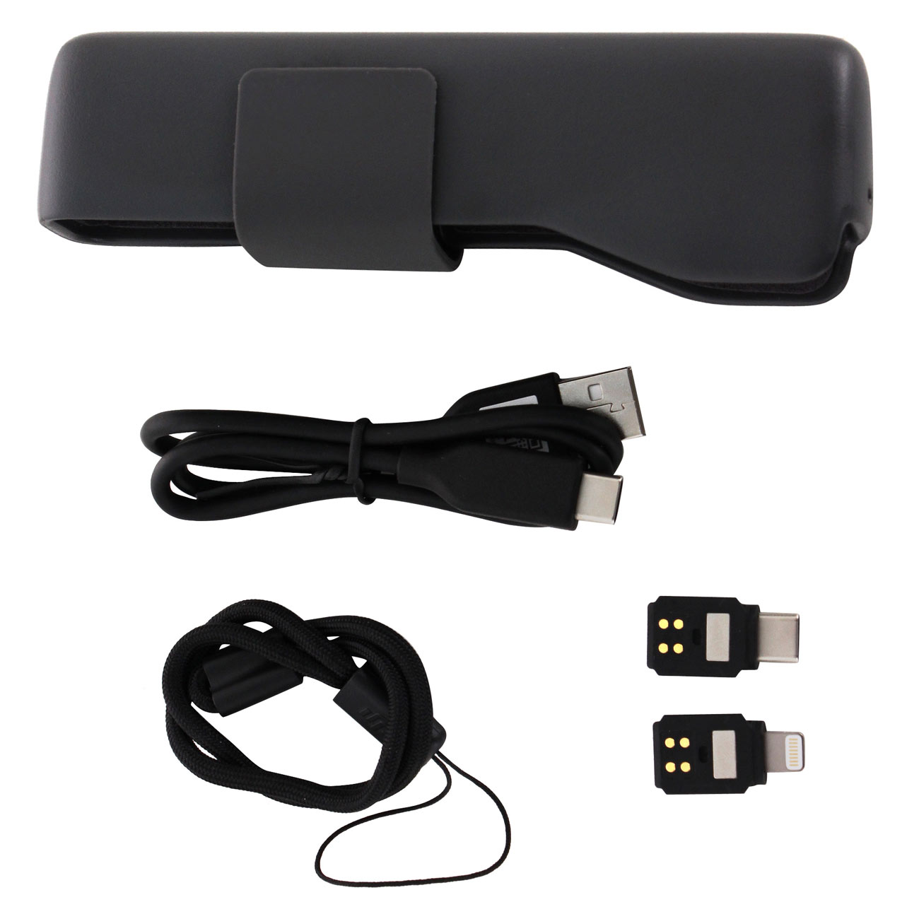 На ручке камеры расположен универсальный разъём. К нему можно подключать адаптеры для микрофона и смартфонов, пульт управления зумом и панорамированием, модуль беспроводной связи или зарядное устройство. В комплект также входят нейтральные светофильтры, прозрачный бокс для подводной съёмки, удлинитель и крепление для аксессуаров.