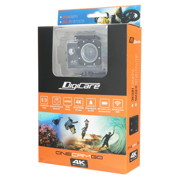 Видеокамера DigiCare OneCam Go пригодится любому поклоннику экстремальных развлечений или серьёзных спортивных соревнований. Эта модель крепится на теле спортсмена и снимает происходящие события в режиме «от первого лица», фиксируя картинку с разрешением 4K Ultra HD.