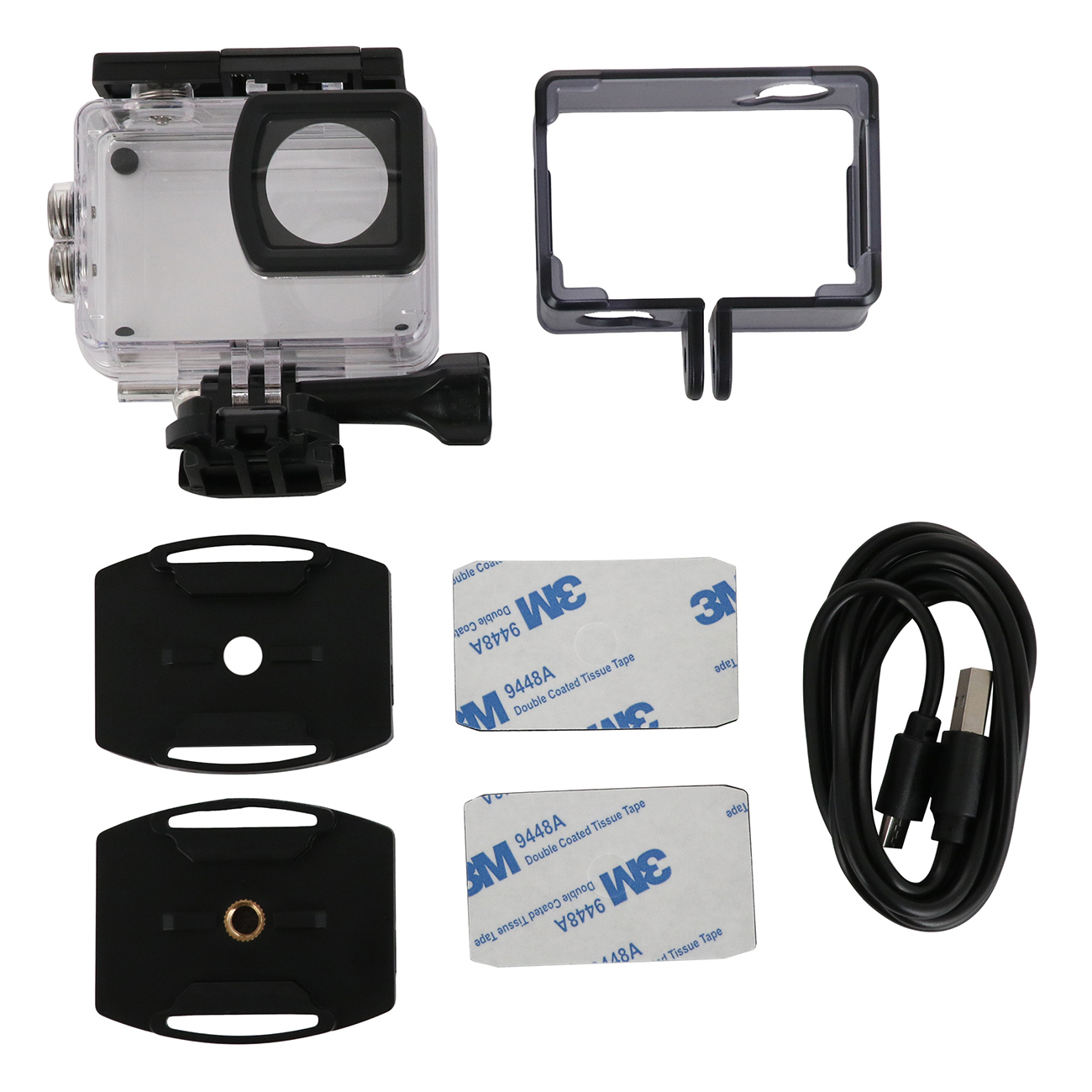 Корпус модели произведен из пластика. Степень защиты IPX8 исключает попадание влаги внутрь устройства. Предусмотрен слот для карт памяти microSD, microSDHC объемом 128 Гб. Модуль Wi-Fi дает возможность выходить в Сеть. Литий-ионный аккумулятор обладает емкостью 900 мА*ч и гарантирует работу в автономном режиме до 3 часов. В комплект входят водонепроницаемый кейс и крепление на липучке. Габаритные размеры камеры — 29,8х59,2х41 мм, вес — 80 г.