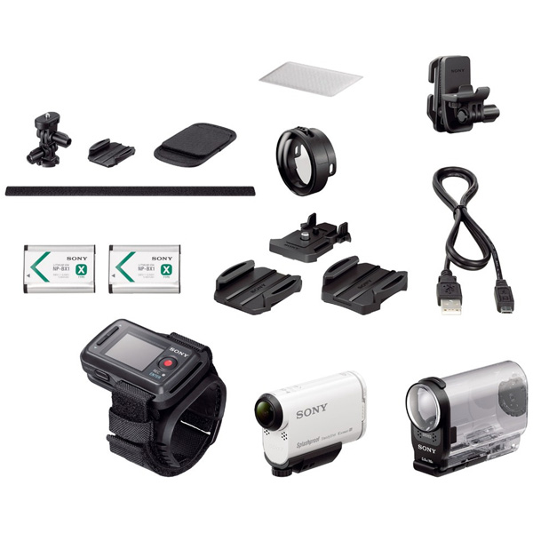 Комплектация: подводный бокс (SPK-AS2) + крепление на липучке (VCT-AM1) + штатив + пульт ДУ (RM-LVR2) + впитывающие салфетки (AKA-AF1) + крепление для рюкзака (BCT-BPM1) + крепление на голову (BLT-CHM1) + жесткая защитная крышка для объектива (AKA-HLP1) + дополнительная батарея (BX1)