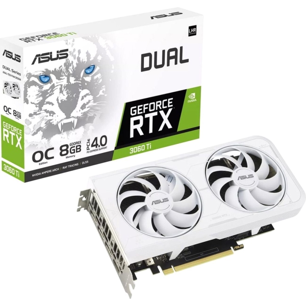 Видеокарта Asus DUAL-RTX3060TI-O8GD6X-WHITE 90YV0IP2-M0NA00 игрового назначения оснащена видеопроцессором NVIDIA и графическим контроллером GeForce RTX 3060 Ti. Объем видеопамяти типа GDDR6X составляет 8 ГБ. Конструкция штатного видеопроцессора включает в себя 4864 универсальных процессора. Высокую производительность обеспечивает увеличенная частота графического процессора — 1710 МГц. Конфигурацией устройства предусмотрено наличие активной системы охлаждения с вентилятором. На корпусе расположены интерфейсы PCI Express 4.0, DisplayPort и HDMI.