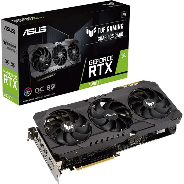 Видеокарта Asus TUF-RTX3060TI-O8GD6X-Gaming 90YV0IL0-M0NA00 — модель с графическим процессором GeForce RTX 3060 Ti, произведенным на базе микроархитектуры Nvidia Ampere по техпроцессу 8 нм. Объем видеопамяти — 8 Гб, тип — GDDR6X. В основе высокой производительности лежат ядра RT второго поколения и тензорные ядра третьего поколения. Частота памяти составляет 19000 МГц, графического процессора — 1410 МГц. Разрядность шины памяти — 256 бит. Набор интерфейсов представлен PCI Express, выходами HDMI (два), DisplayPort (три).