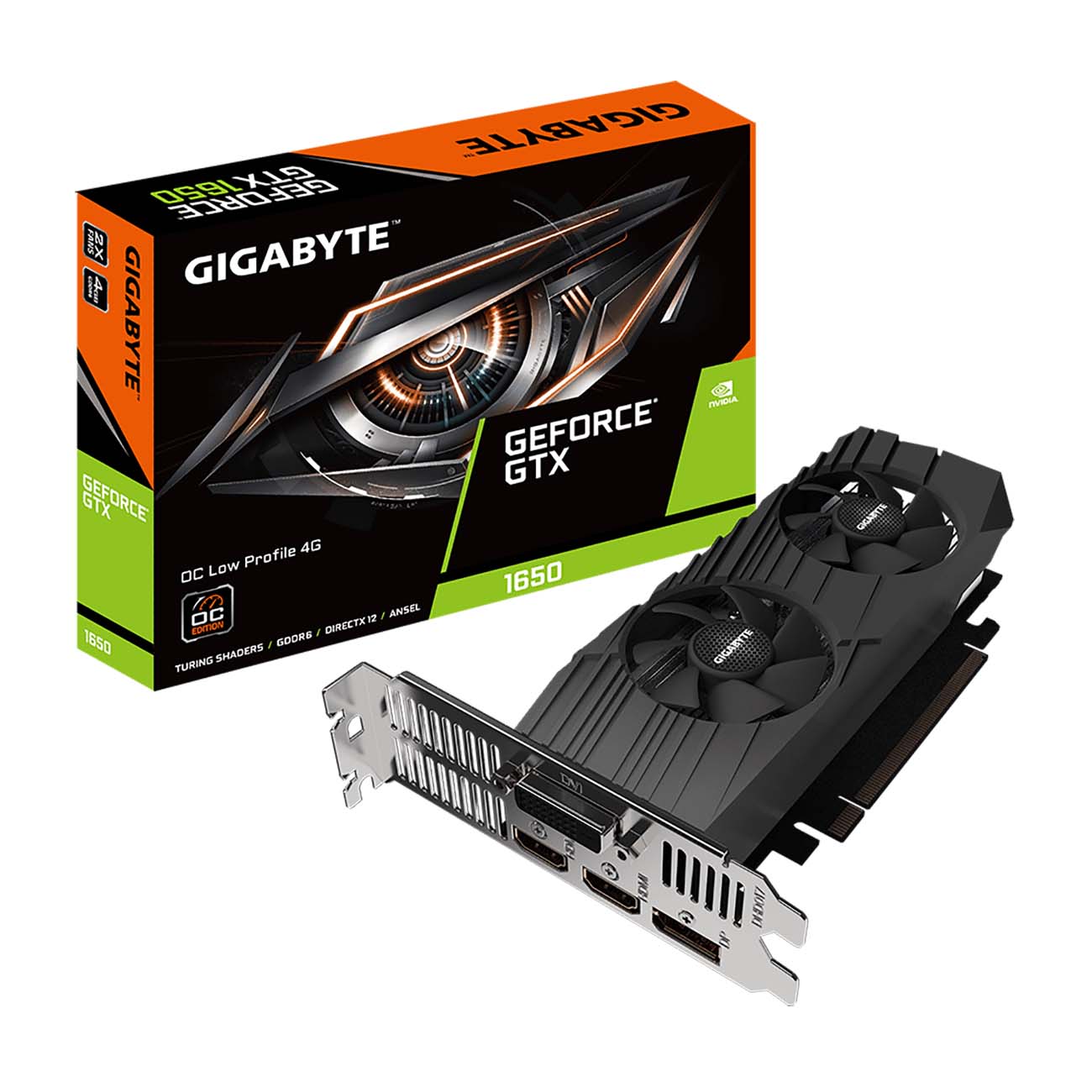 Gigabyte GeForce GTX 1650 – низкопрофильная видеокарта, которая позволит сэкономить больше пространства при сборке компьютера. Она подойдёт для компактных и тонких системных блоков.