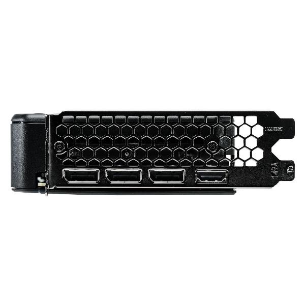 Для подключения сторонних устройств в корпусе видеокарты предусмотрены разъемы DisplayPort (три) и HDMI. Тонкая линия RGB подсветки добавляет эстетики. Поддержка 3D моделей накладок Palit Maker позволяет настраивать внешний вид кожуха. Прочная задняя пластина придает жесткость конструкции корпуса.