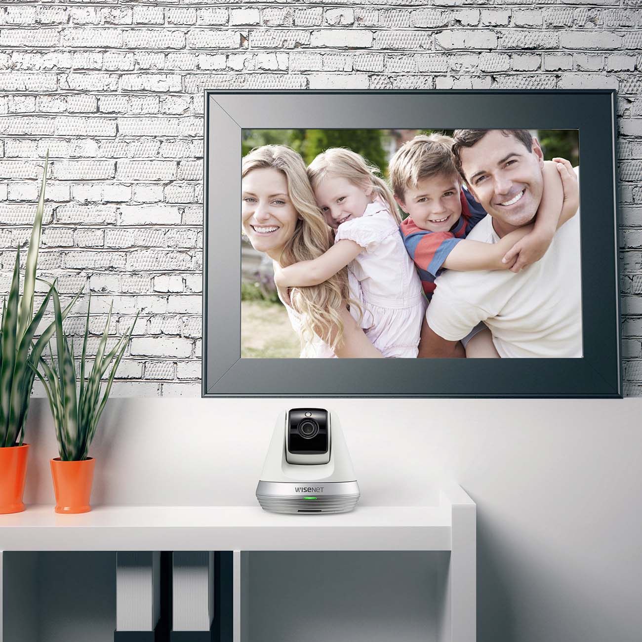 Видеоняня Wisenet SNH-V6410PNW позволяет дистанционно отслеживать изменения в детской комнате. Она подключается к смартфонам, планшетам, компьютерам через Wi-Fi. Для управления настройками и просмотром трансляции необходимо установить специальное приложение. Камера с возможностью регулировки поворота обеспечивает широкий угол обзора, а функция ночного видения ― качественное изображение в условиях плохой освещенности.
