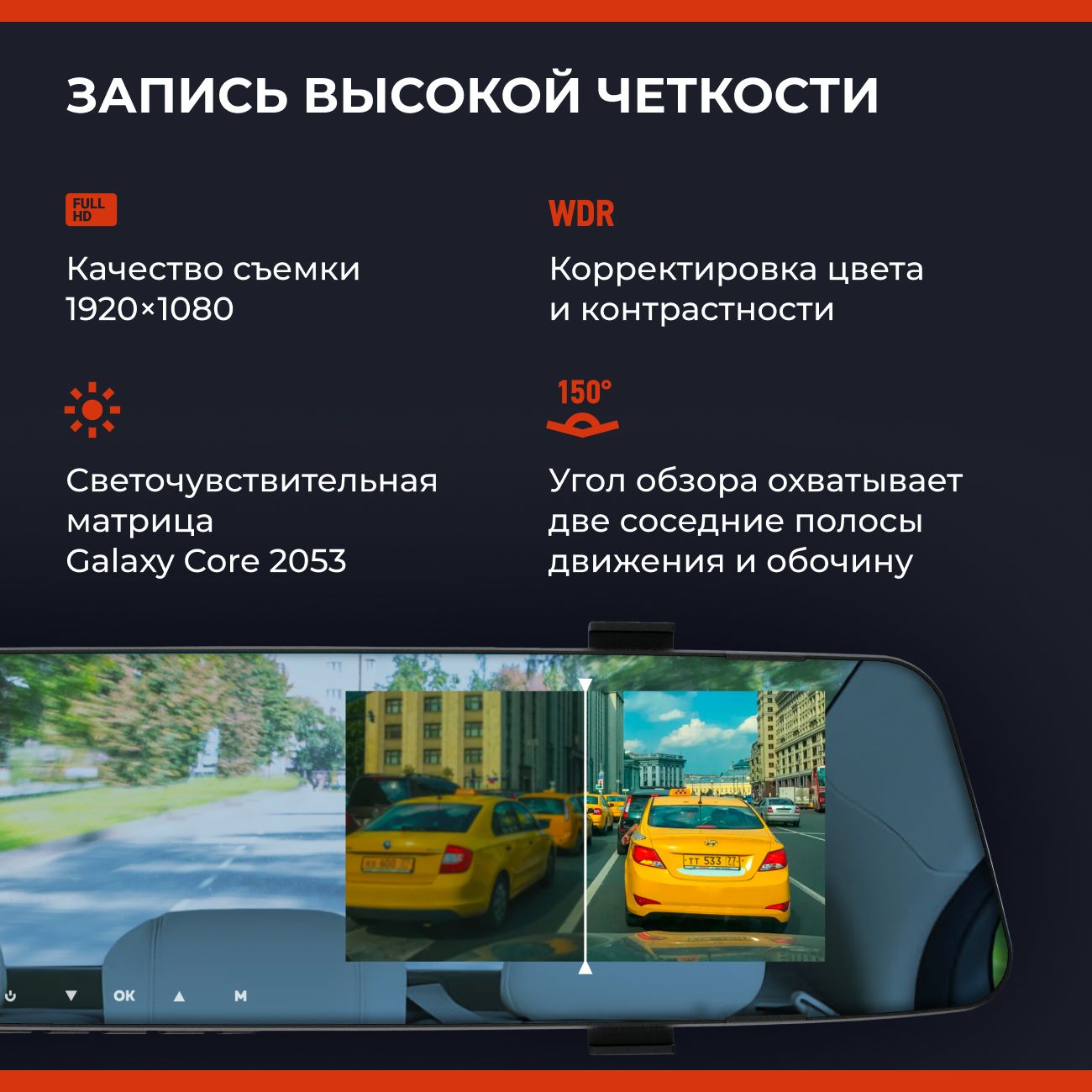 Видеорегистратор DaoCam Mirror 1045954 черного цвета обладает габаритами 3,2х8,6х30 см. Масса устройства — 230 г. Предусмотрена возможность питания как от аккумулятора, так и от сети прикуривателя. Емкость встроенной батареи типа Li-Ion — 200 мА*ч. На корпусе размещен разъем miniUSB. В комплекте поставляются микрофон, два кабеля, кабель для электроприкуривателя, набор для установки и камера заднего вида. Диагональ дисплея составляет 4,55", при этом разрешение — 864х480 пикселей.