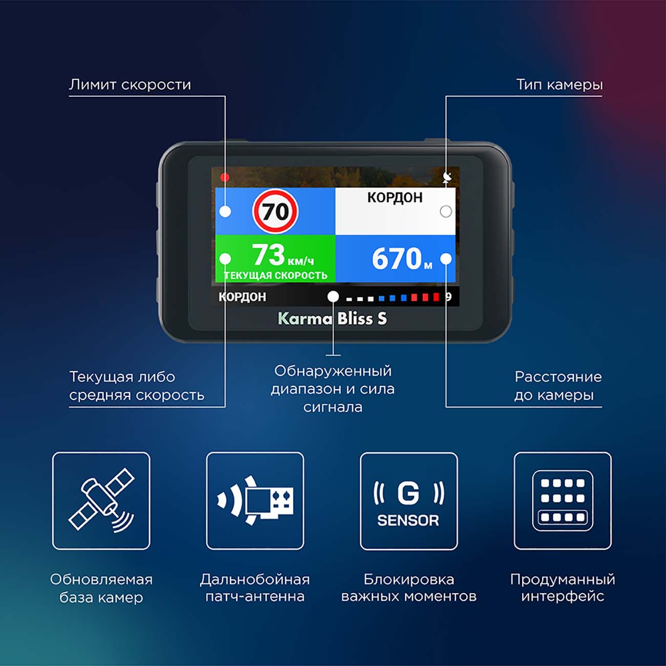 В корпус встроен радар-детектор с сигнатурным фильтром, обеспечивающим защиту от ложных срабатываний. Поддержка GPS и ГЛОНАСС позволяет своевременно получать предупреждения о приближении к участкам, находящимся под контролем камер ДПС.