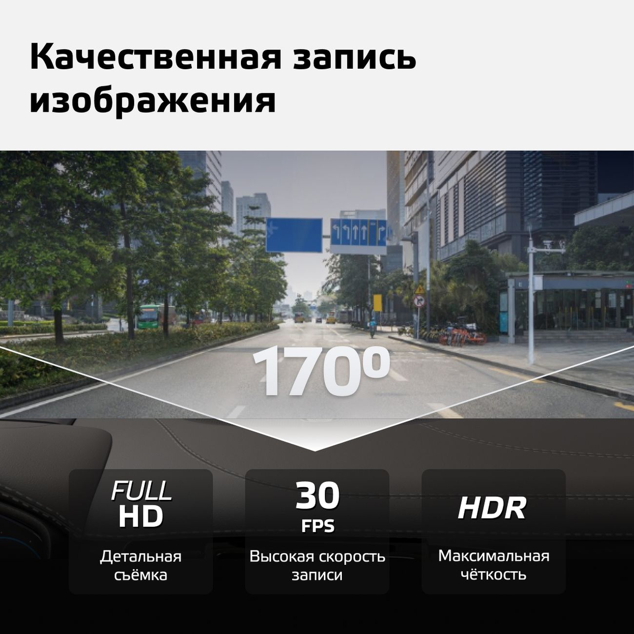 Видеорегистратор Fujida Zoom Hit 2 — устройство, которое ведет запись в разрешении 1920х1080 пикселей, за счет чего картинка получается детализированной и четкой. Частота кадров составляет 30 в сек, что гарантирует получение плавного изображения. Угол обзора заднего вида — 140°, основной камеры — 170°. Для предварительного просмотра файлов модель оборудована 2-дюймовым дисплеем типа IPS (1280х720 пикселей).