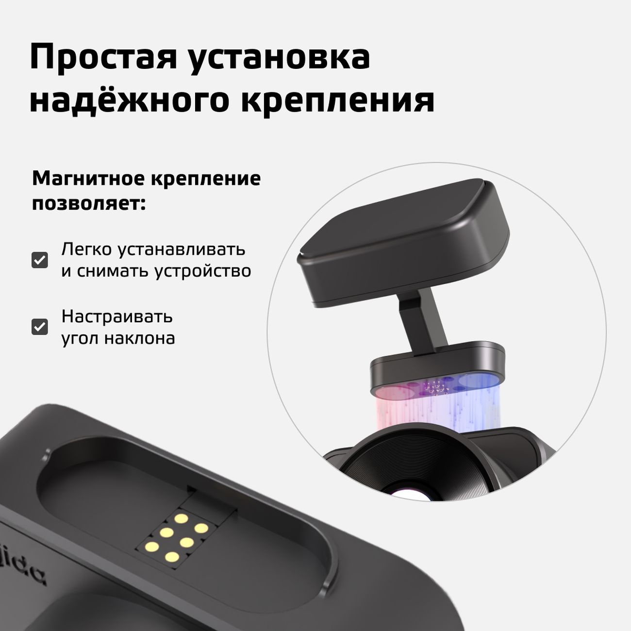 Видеорегистратор автоматически включается при начале поездки. Режим «Аварийная запись» предназначен для сохранения потенциально опасных моментов при движении машины, «Ночная съемка» позволяет осуществлять запись в любое время суток. Интервал записи равен 1, 3 и 5 минут. В случае отсутствия питания устройство автоматически отключается.
