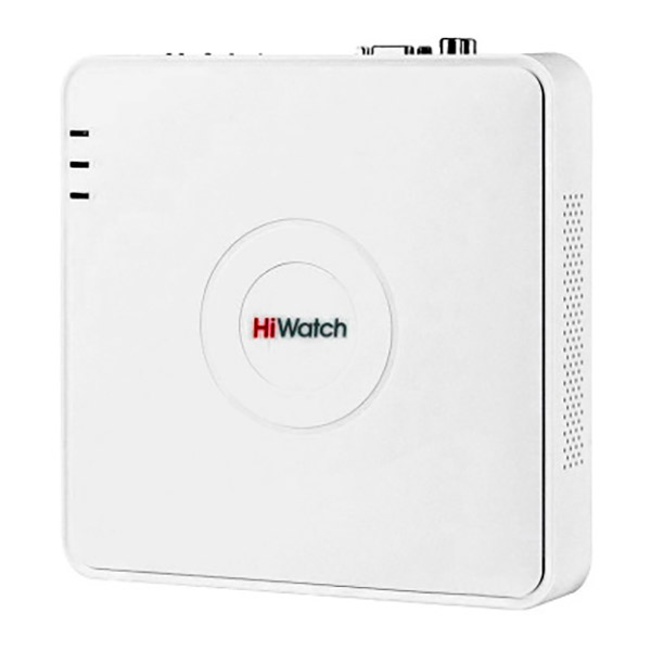 У гибридного видеорегистратора HiWatch — четыре канала для подключения камер. Его максимальное разрешение в 1280 х 720 Мп позволяет получить детальную картинку. Есть порты HDMI и VGA (D-Sub), а также слот для HDD.