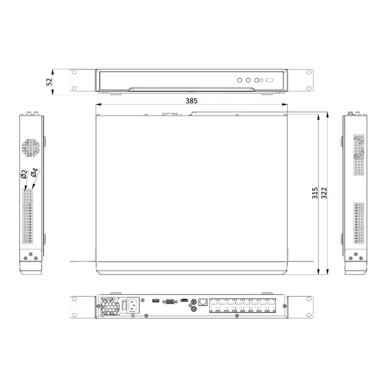 HiWatch DS-N316/2P C — видеорегистратор с шестнадцатью IP-видеовыходами, который поддерживают формат видео H265+, H265, H264 и H264+ с пропускной способностью 160 Мбит/с. Исходящий поток достигает 80 Мбит/с. Модель может одновременно выводить изображения через встроенные порты HDMI и VGA. Максимальное разрешение изображения через порт HDMI — 4К. Есть функции интеллектуальной настройки подключаемых камер: подсчет людей, реакции на движение, тепловые карты. Для подключения жесткого диска объемом до 1 Тб используется SATA-разъем. Размеры видеорегистратора — 38,5 х 31,5 х 5,2 см при весе 2,6 кг. Оптимальная рабочая температура — от -10° до 55° при влажности до 90%.