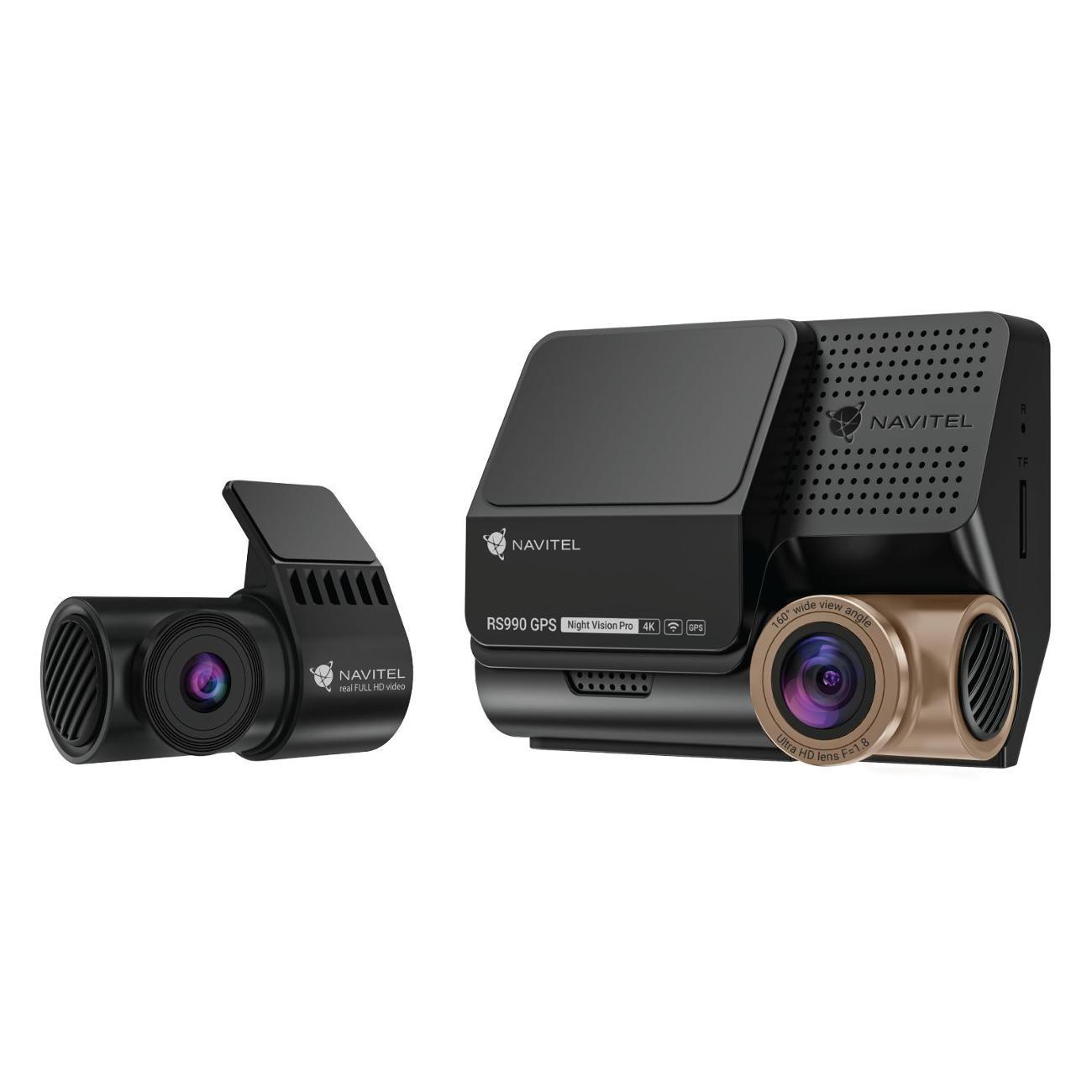 Двухканальный видеорегистратор Navitel RS990 снимает видео со звуком в максимальном разрешении 4К при 60 к/с, обеспечивая контрастное, четкое и детальное изображение дороги в любое время суток. Прибор состоит из основного блока и задней Full HD камеры с углами обзора 160° и 120°. Устройства фиксируются в салоне автомобиля с помощью 3М скотча. Управление голосовыми командами повышает безопасность вождения.