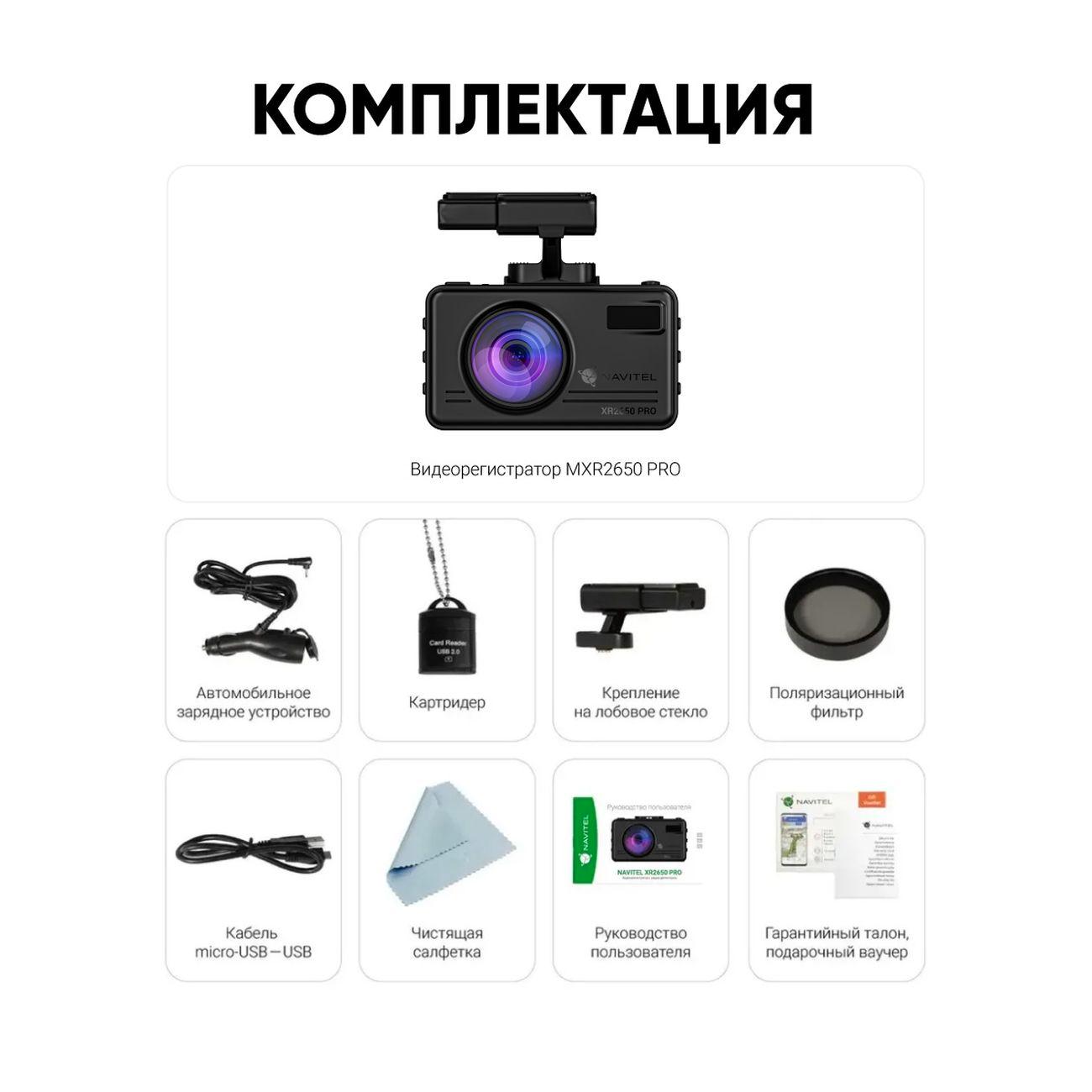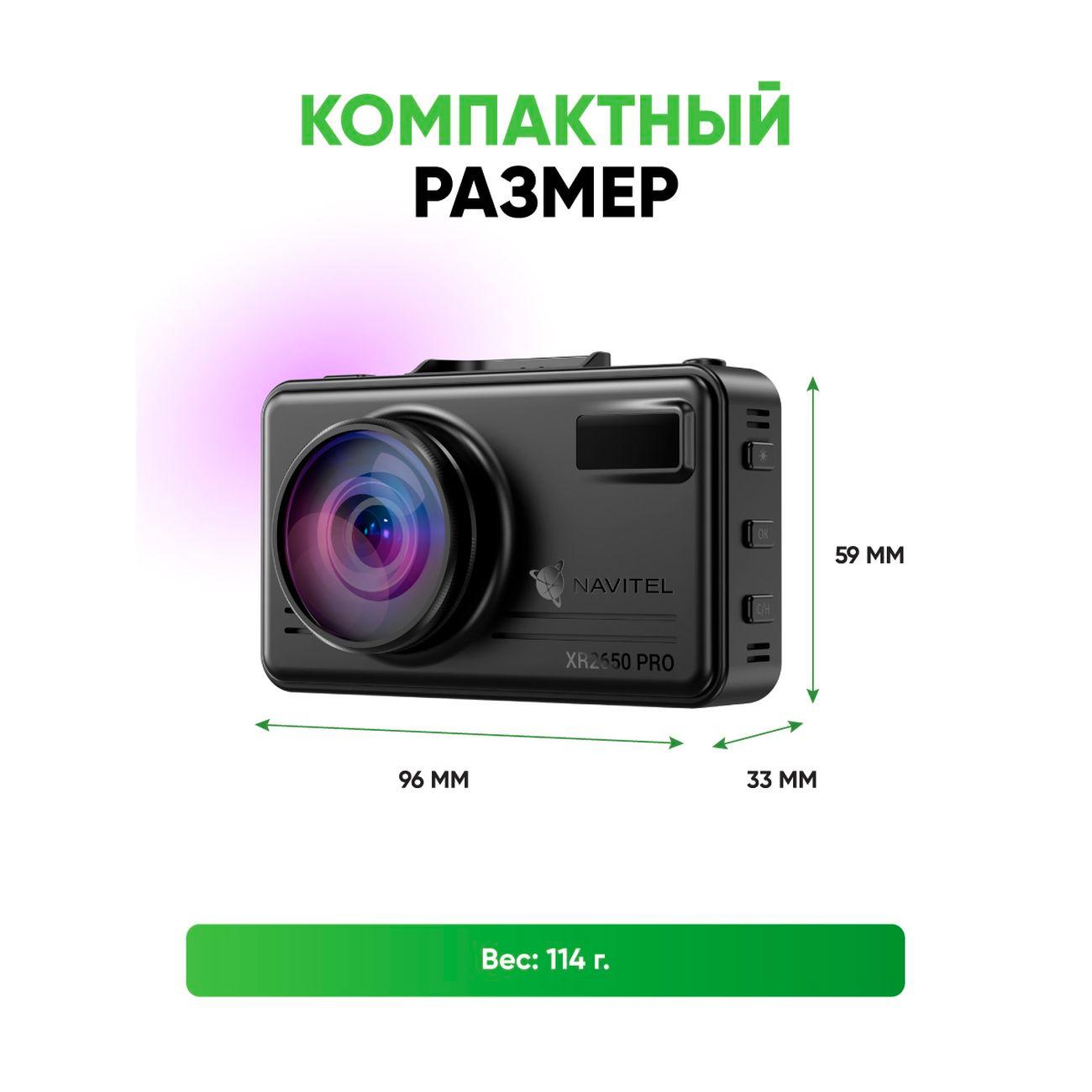 Видеорегистратор Navitel XR2650 Pro сочетает функциональные возможности устройства фиксации дорожной обстановки, навигационного помощника и радар-детектора. Прибор оснащен шестилинзовым объективом с углом обзора 150°, который охватывает все полосы и обочины дорог. Процессор Mstar MSC833 в сочетании с CMOS-сенсором Sony 307 Starvis и микрофоном ведет запись в разрешении 1920х1080 пикселей при 30 к/c, поддерживая высокое качество съемки при любом освещения. Поляризационный фильтр устраняет блики.