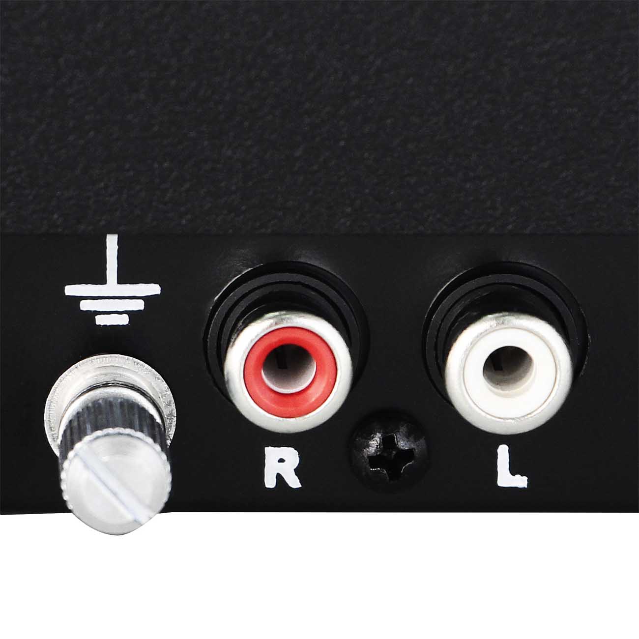 Устройство оборудовано малошумным двигателем, а на нижней части корпуса есть прорезиненные ножки. Они препятствуют возникновению вибраций и резонансов, поэтому звучание будет не только мощным и громким, но и чистым. Позолоченные контактные поверхности RCA-разъёмов обеспечивают защиту сигнала от помех.