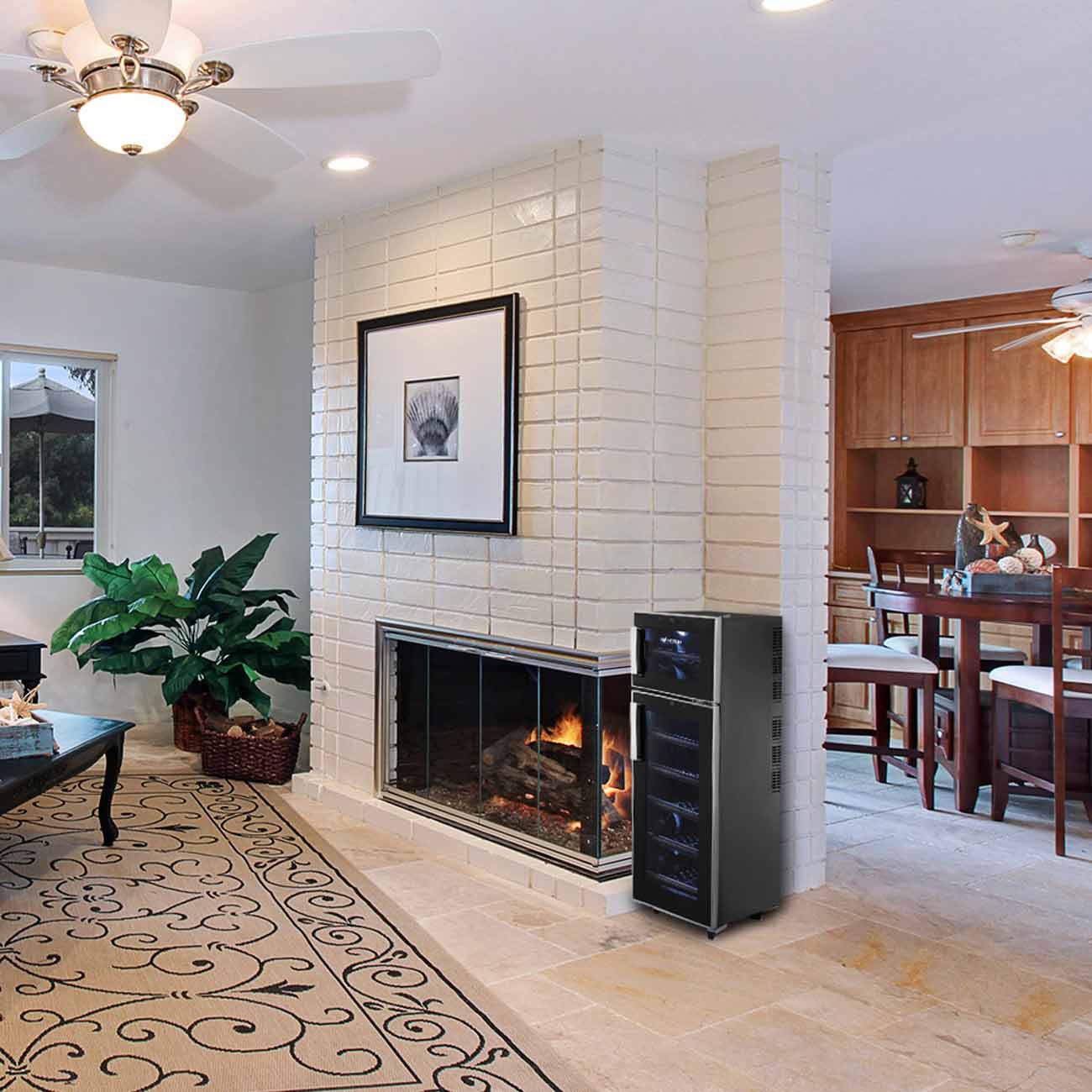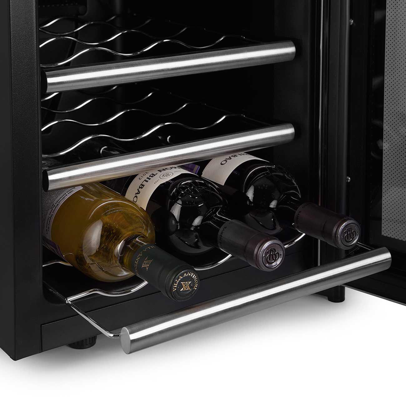 Эта модель разделена на две климатические зоны, причём температура в каждой из них регулируется независимо от другой. Благодаря этому в неё можно разместить красные и белые сорта, создав для них оптимальные условия. Через дверцу с прозрачным тонированным стеклом можно любоваться бутылками, причём их содержимое надёжно защищено от окисления из-за воздействия УФ-лучей.