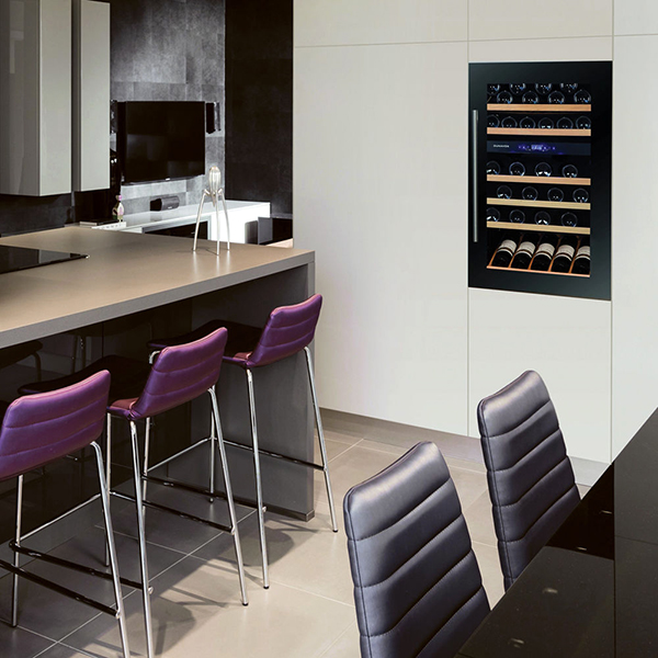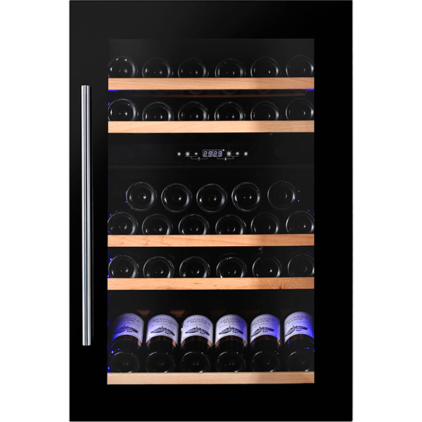 Dunavox DAVS-49.116DB — вместительная модель компрессионного винного шкафа, в которой можно хранить до 49 бутылок с напитками. Управление сенсорное. Присутствуют два охлаждающих пространства, в каждом можно установить температурный режим от +5 до +20°. Электронный термостат отвечает за поддержание заданной температуры. Внутри емкости с вином лежат на выдвигающихся буковых полках. Влажность поддерживается на уровне 60-80%. Уровень шума при работе — 39 дБ. Присутствует реверсивная дверь, наделенная двойным стеклом, обеспечивающим защиту от ультрафиолета. У модели есть встроенная вентиляционная система, поддерживающая циркуляцию воздуха. Габариты шкафа — 585 х 590 х 550 мм.