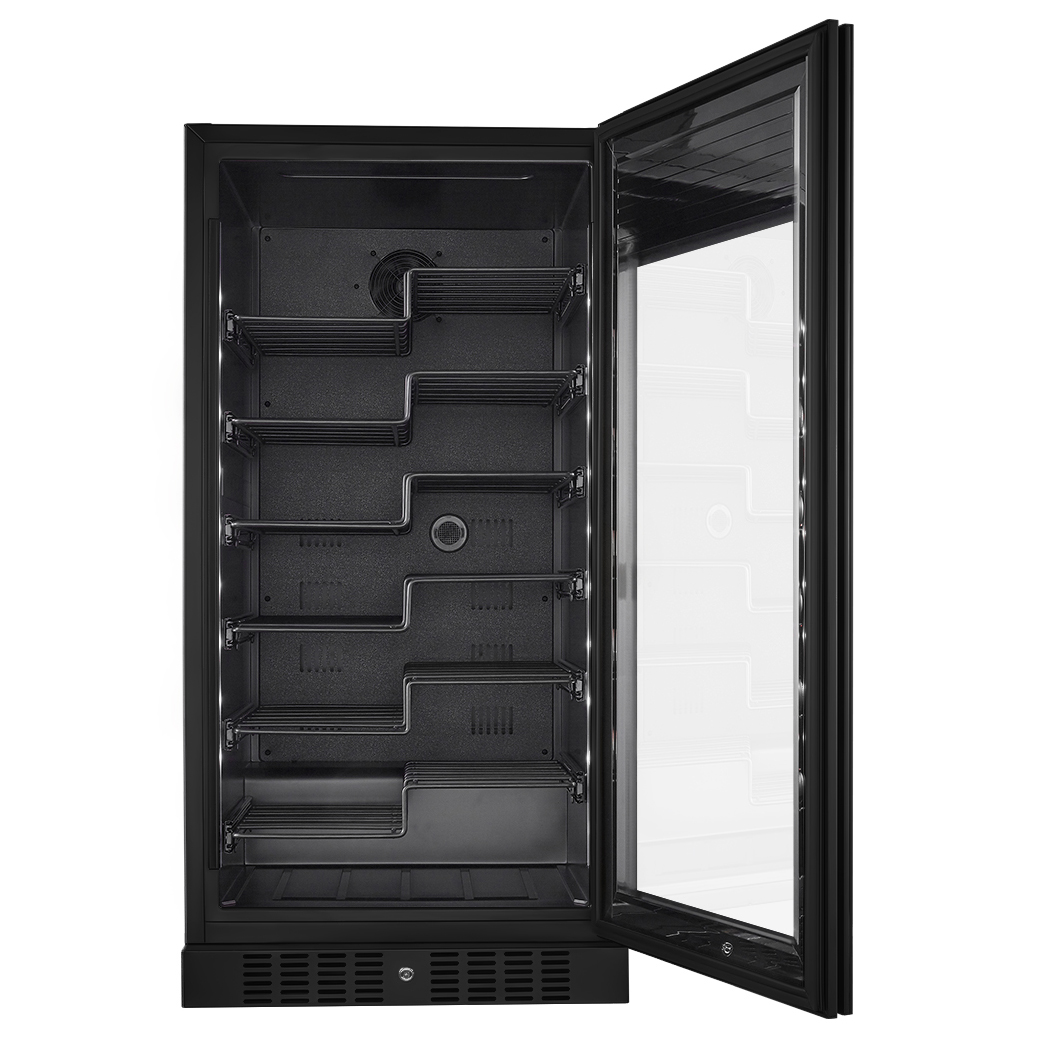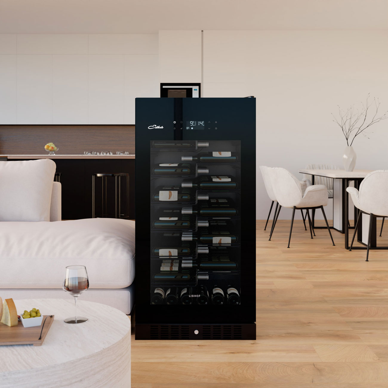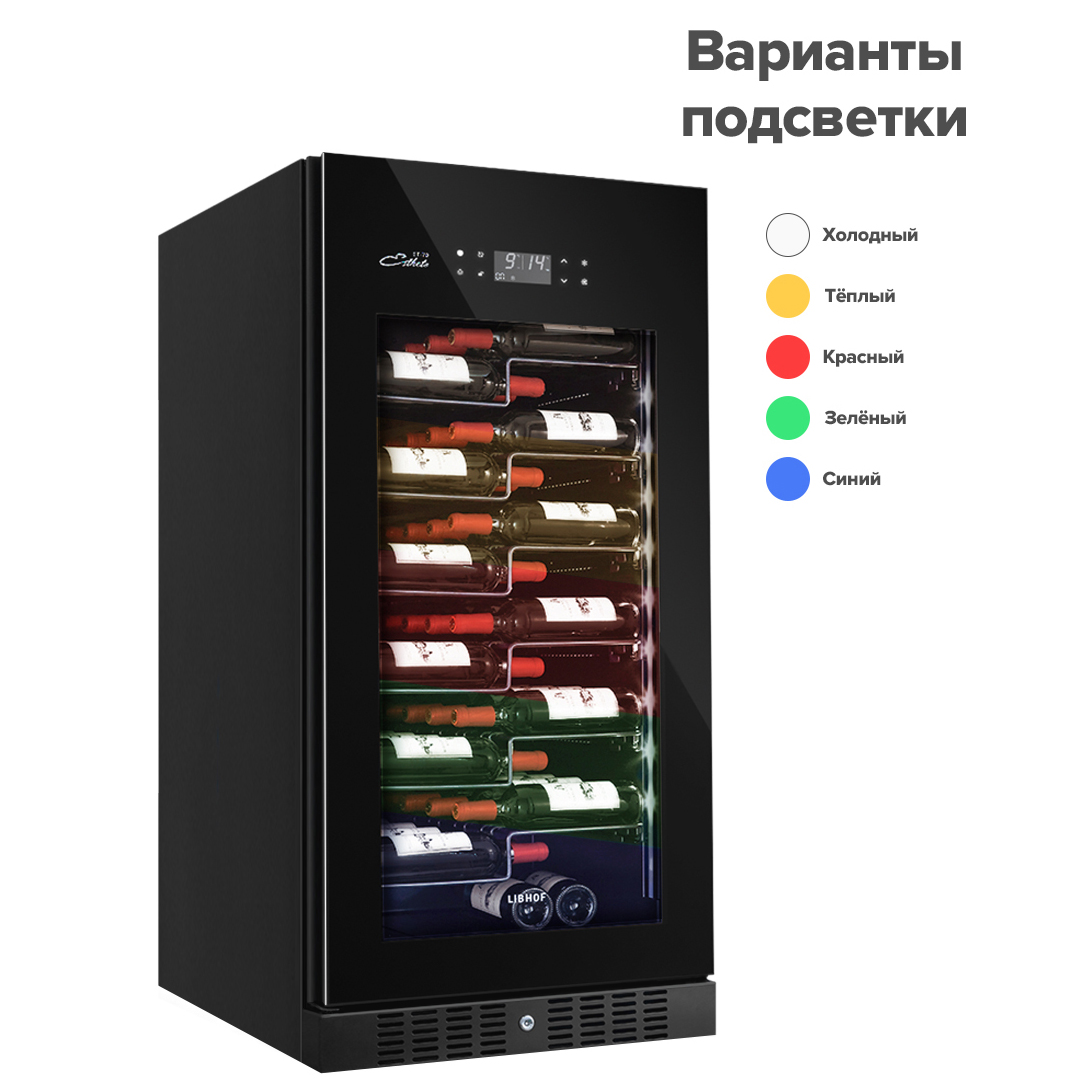 Вот просто шик блеск и красота. Дизайнеры на совесть постарались над созданием данного шкафа. В любой интерьер впишется идеально просто. Шесть независимых полок, на которые вмещаются приличное количество бутылок. Все винные напитки под сохранностью, поскольку ни один луч ультрафиолета не способен проникнуть внутрь холодильника