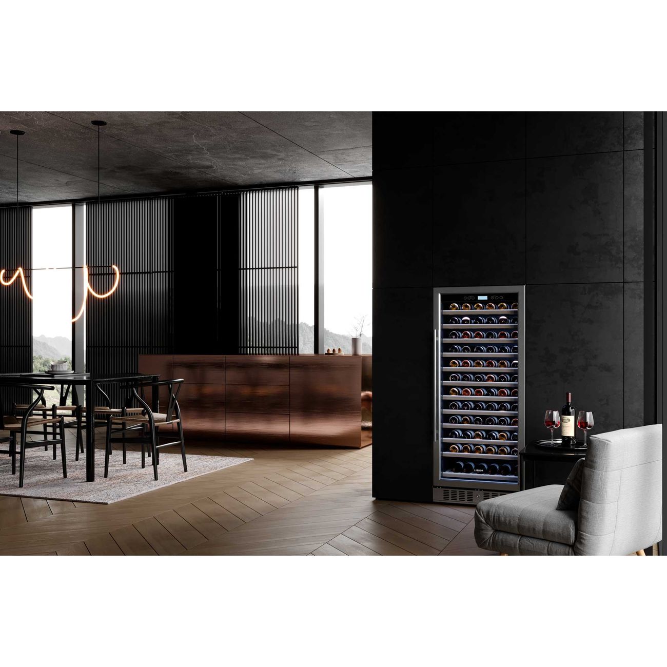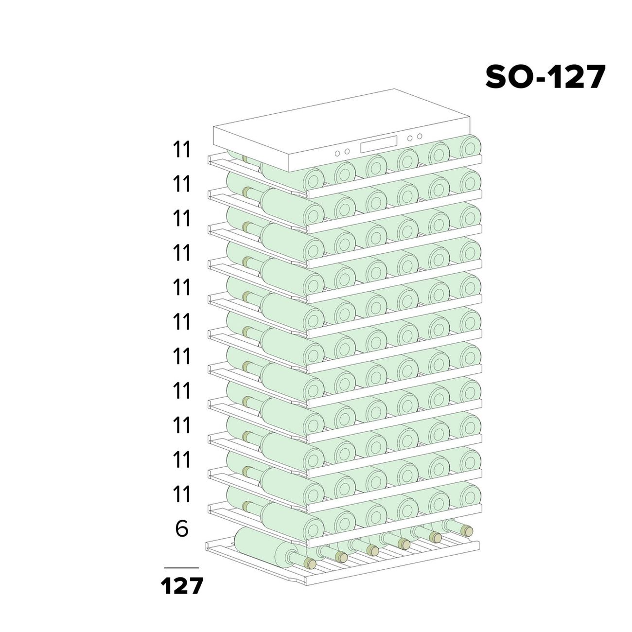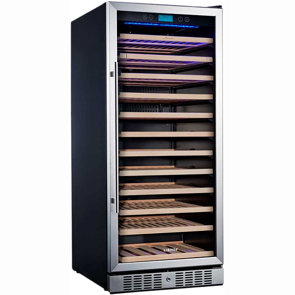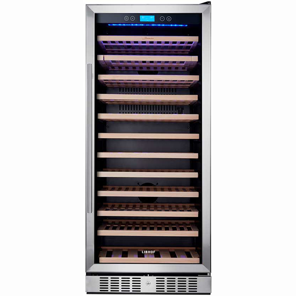Libhof Sommelier SO-127 — монотемпературный компрессорный винный холодильник, который можно наполнить 127 бутылками. Также имеется возможность встраивания. Температура регулируется в диапазоне от +5 до +18°. Встроенная вентиляционная система обеспечивает равномерное распределение воздуха во внутреннем пространстве. Сменный угольный фильтр очищает воздух от ненужных запахов. Бутылки с вином располагаются на 12 деревянных (бук) полках, которые гасят вибрации. Присутствует дисплейная полка с наклоном, дающая возможность в любое время осуществить демонстрацию винной коллекции. В верхней зоне дверцы располагается панель управления. Дверцу можно перенавешивать. Мощность модели — 180 Вт. Размеры модели — 59,5х139,7х68 см. Уровень шума при работе не превышает 41 дБ.