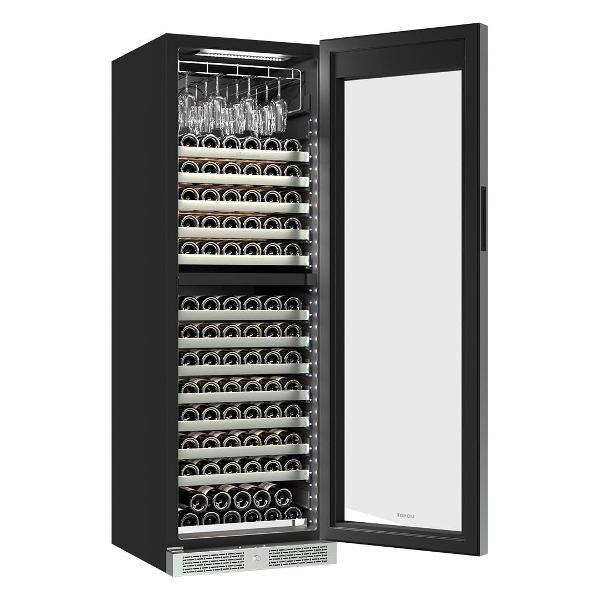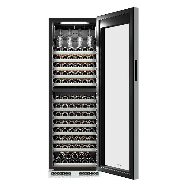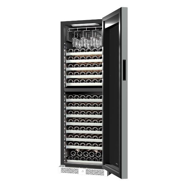 Грамотно все сделано в нем. Полки выдвигаются довольно просто и я с легкостью достаю любую бутылку, которая мне нужна. И да, рассчитан шкаф на 165 бутылок вина.Имеется две температурные зоны, у которых регулируется температура индивидуально с довольно приличным диапазоном. Внутри камеры не создается иней и запаха, за счет правильной работы компрессора и вентилятора.
