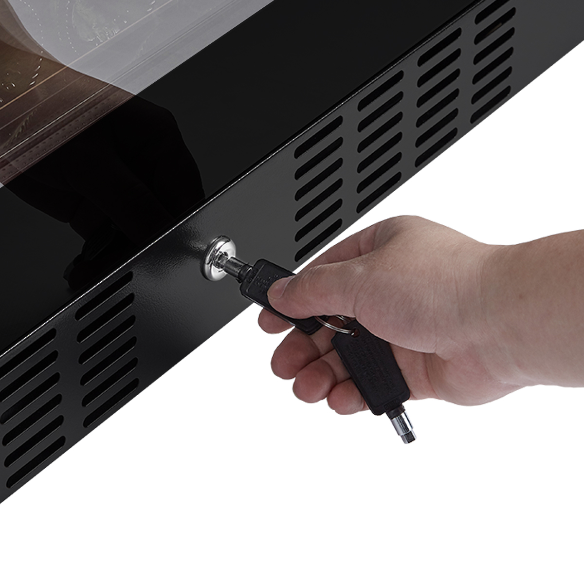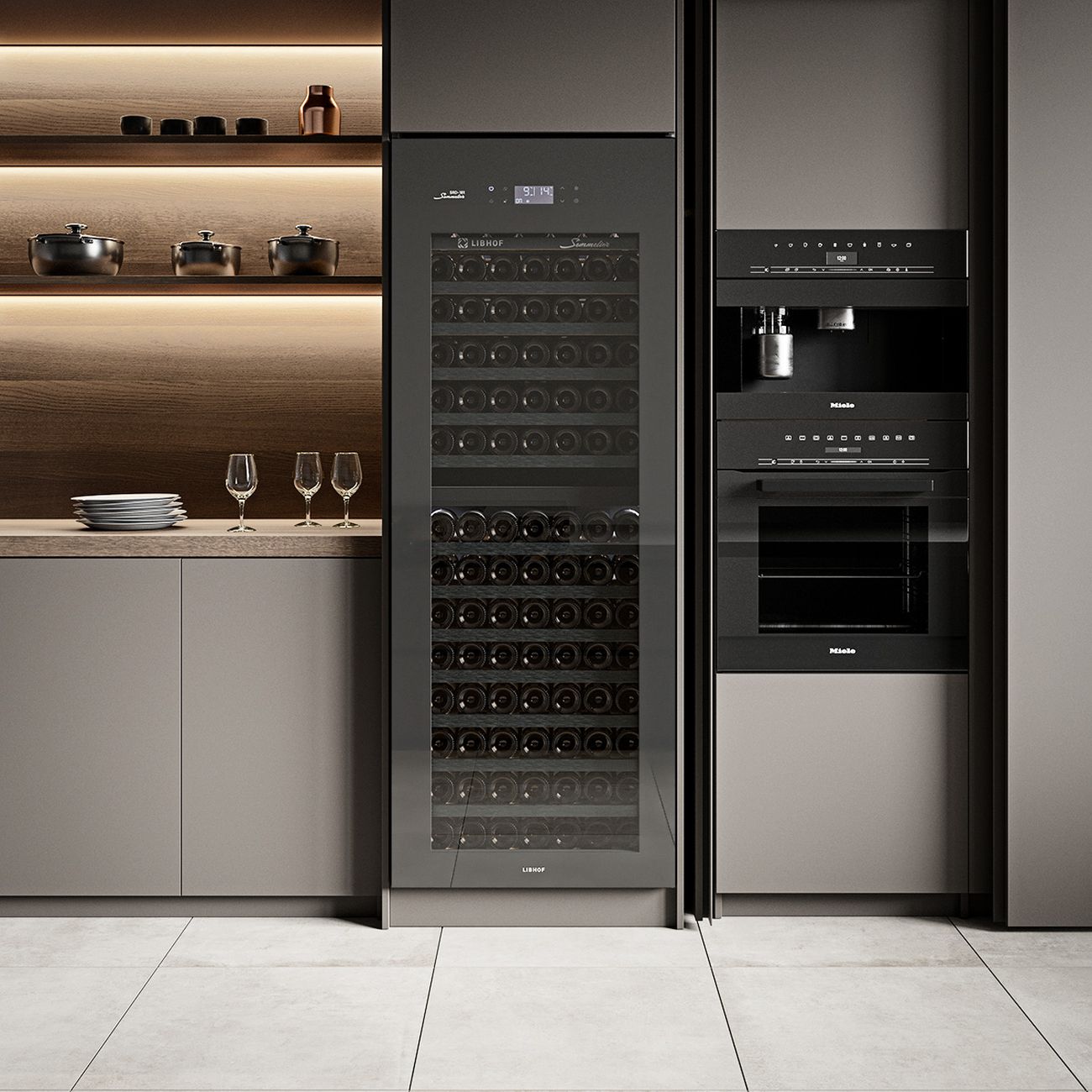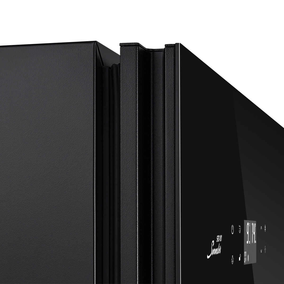 Винный шкаф Libhof SRD-181 с корпусом черного цвета оснащен инверторным компрессором и встроенным вентилятором, за счет которого охлажденный воздух равномерно распределяется по камере. Есть угольный фильтр, задерживающий неприятные запахи. Внутреннее пространство разделено на две зоны, в каждой из них устанавливается свой уровень температуры.