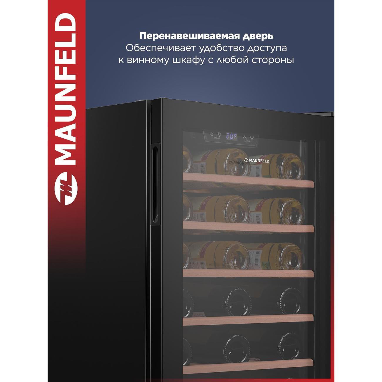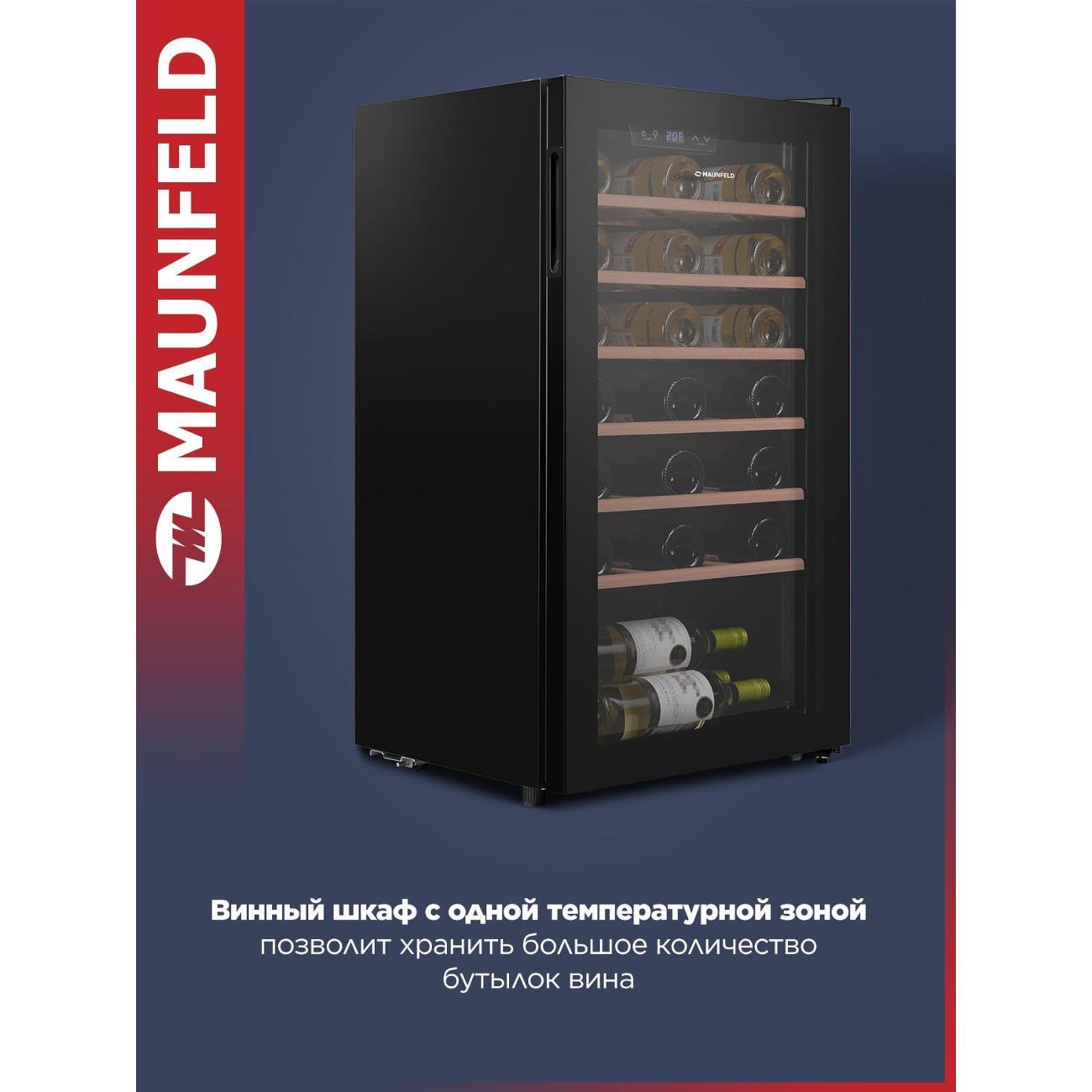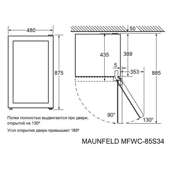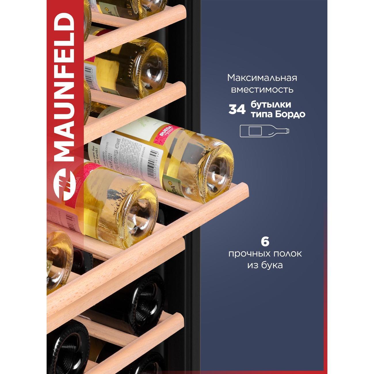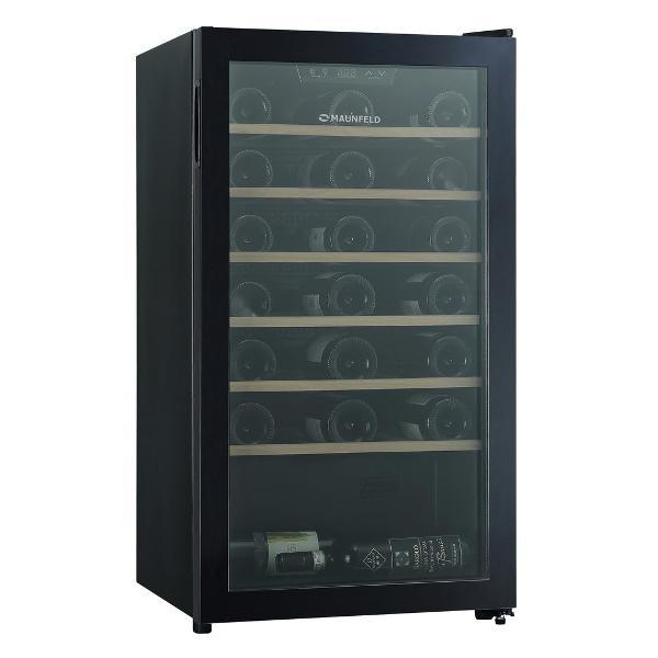 Винный шкаф от 140 см Maunfeld MFWC-85S34 компрессорного типа охлаждения относится к климатическому классу N-SN-ST. В устройстве используется хладагент типа R 600a. Объем холодильной камеры достигает 85 л. Модель оборудована шестью полками, которые вмещают в себя до 34 бутылок. При работе уровень шума не превышает 40 дБ.
