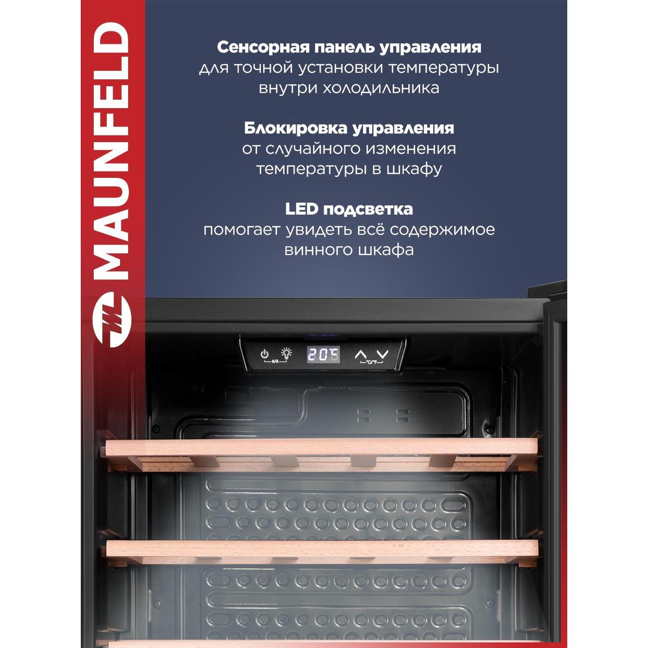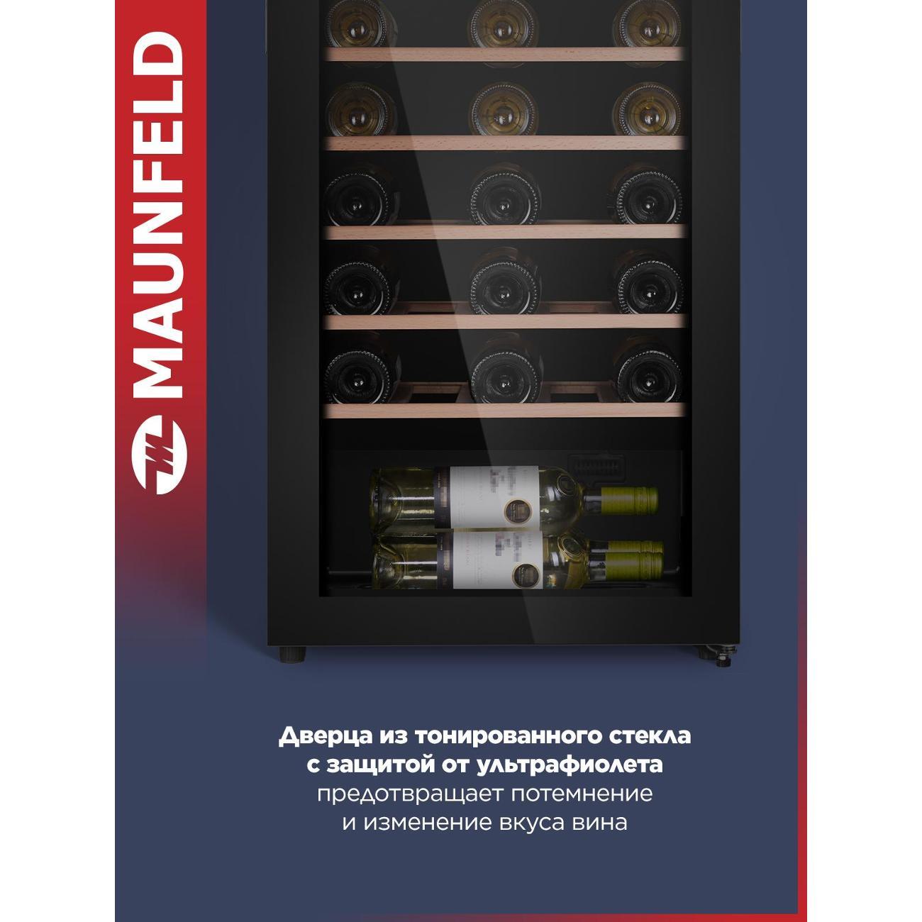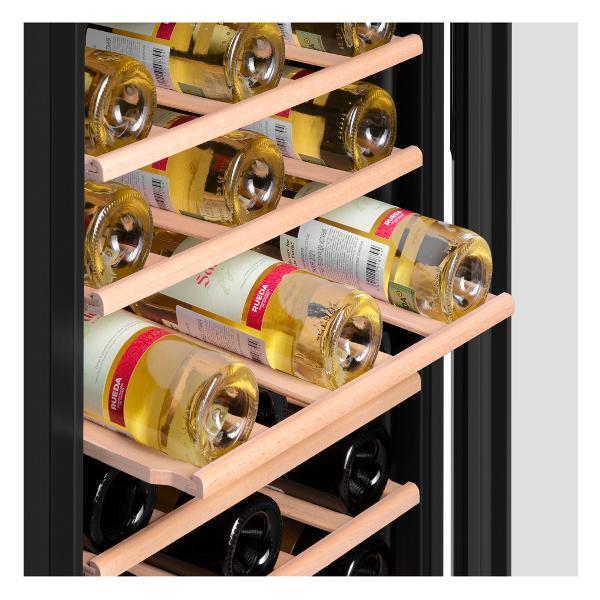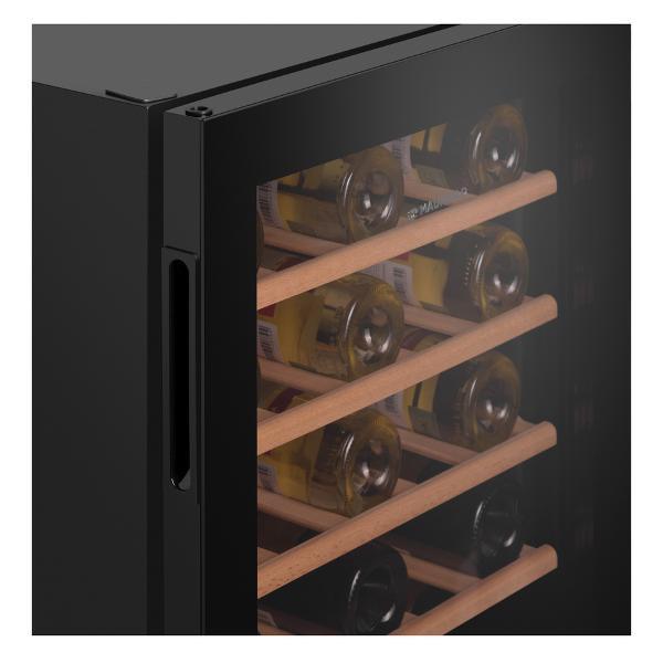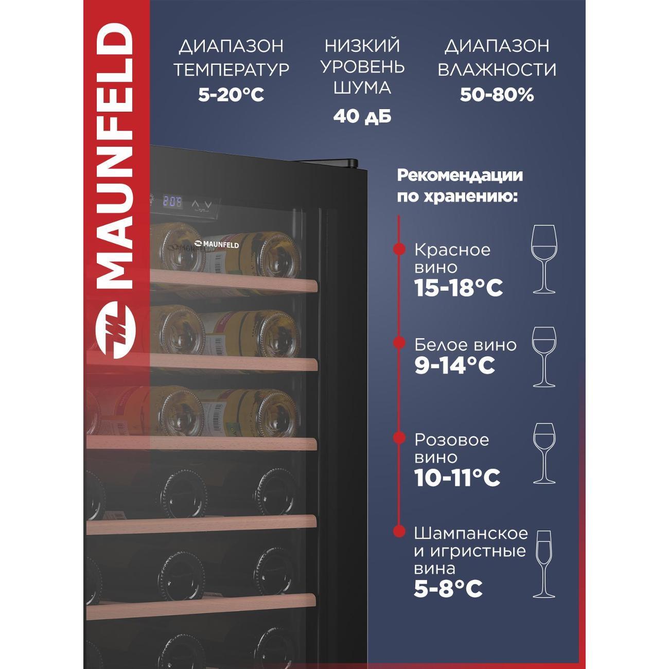 Винный шкаф от 140 см Maunfeld MFWC-85S34 компрессорного типа охлаждения относится к климатическому классу N-SN-ST. В устройстве используется хладагент типа R 600a. Объем холодильной камеры достигает 85 л. Модель оборудована шестью полками, которые вмещают в себя до 34 бутылок. При работе уровень шума не превышает 40 дБ.