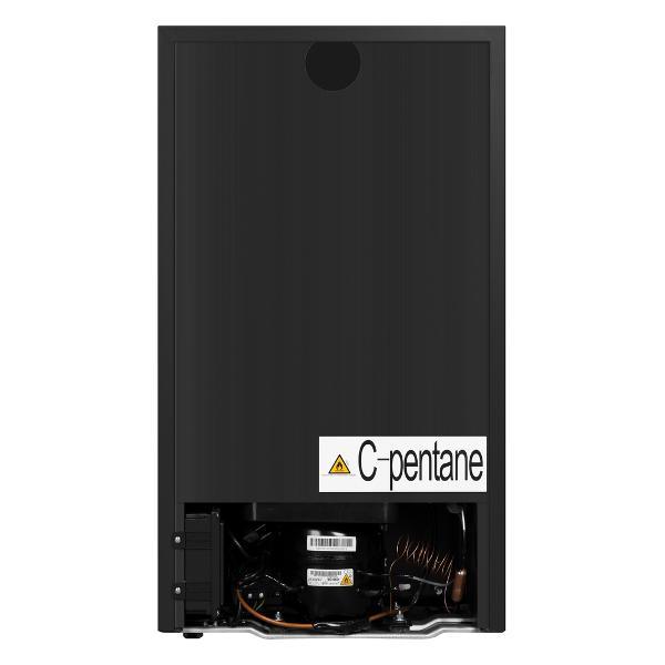 Устройство оборудовано сенсорным типом управления, LED дисплеем, LED подсветкой холодильника с плавным включением освещения и вентилятором для распределения температуры. Для устранения запахов предусмотрено наличие угольного фильтра. На корпусе шкафа расположены индикаторы включения, режима работы, температуры в холодильнике и каждой зоне. Для безопасной эксплуатации модель оборудована световым и звуковым сигналом увеличения температуры, звуковым сигналом открытия двери холодильника и функцией самодиагностики неисправностей. Габаритные размеры модели — 87х48х43 см. Цвет модели — черный.