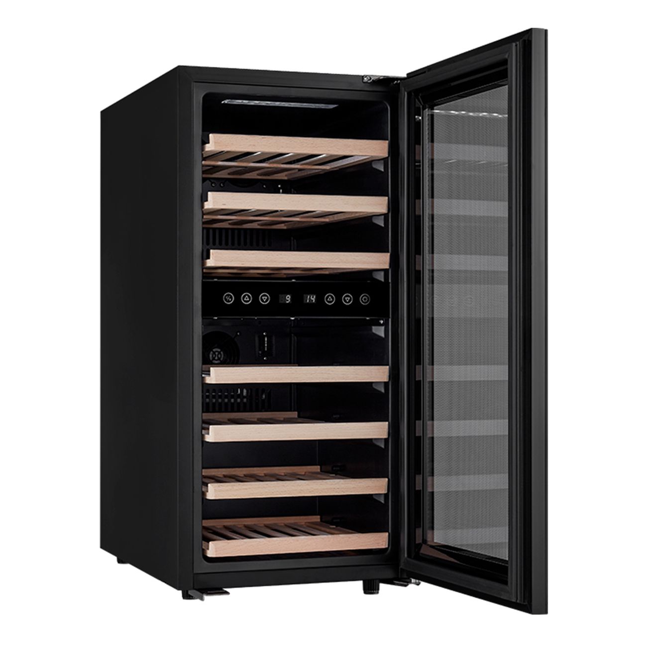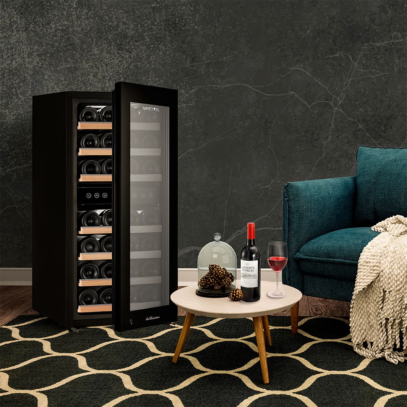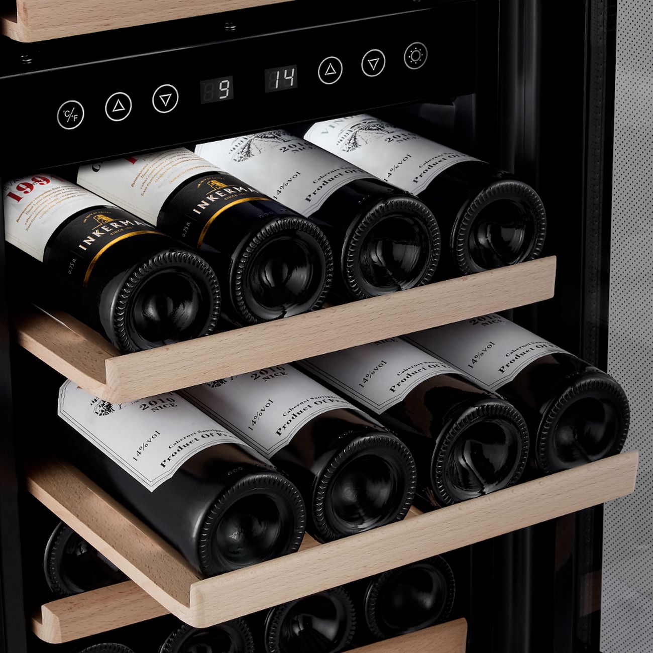 Приобрели винный шкаф свекру на юбилей, чтобы хранил вина, которые привозит из путешествий. Прибор выглядит стильно со своим дизайном и полками из дерева. Работает тихо, и при необходимости можно включить подсветку. Содержимое видно за стеклянной дверцей, но она не пропускает лучи, которые могут повлиять на вкус напитков. Удобно сенсорное управление и две камеры, в которых можно настроить разную температуру для хранения белого и красного вина. Такой прибор необходимость, ведь только правильно охлажденные вина раскрывают свои лучшие качества.