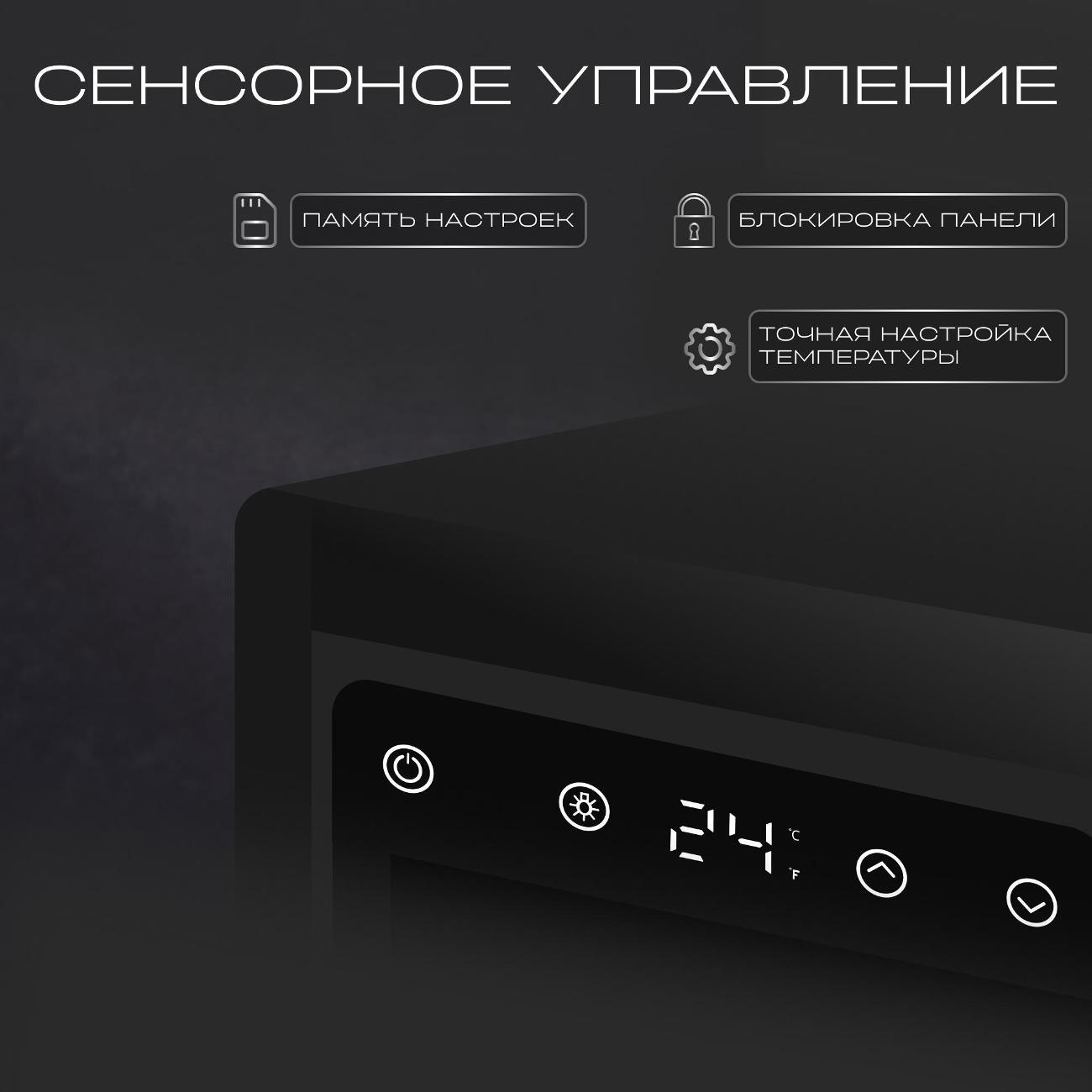 Панель управления с LED-дисплеем расположена внутри камеры. Легким касанием можно установить температуру с точностью до градуса. Функция блокировки кнопок защищает от случайного изменения параметров.