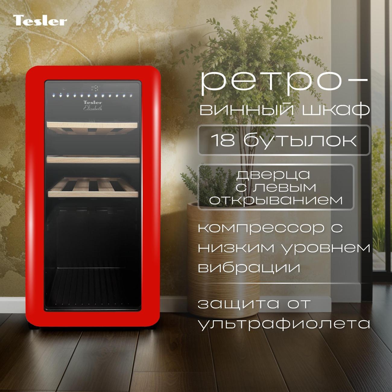Винный шкаф Tesler CWC-188 Ruby Red LD — модель с полезным объемом 45 л, вмещающая в себя до 18 бутылок. Компрессор, выдающий шум до 41 дБ, использует хладагент R600a. Динамическая система охлаждения равномерно распределяете холод. Диапазон температуры варьируется от 5°С до 20°С.