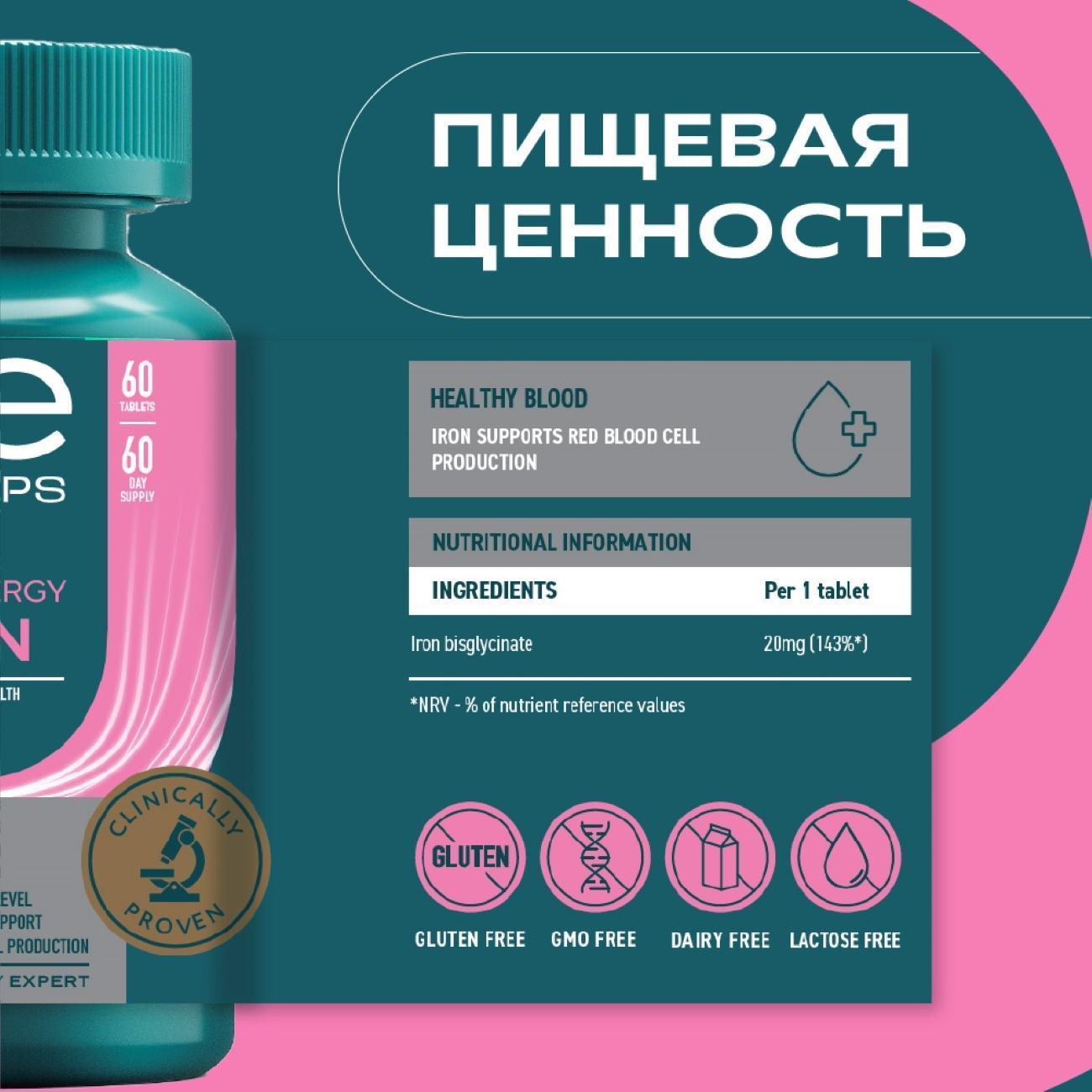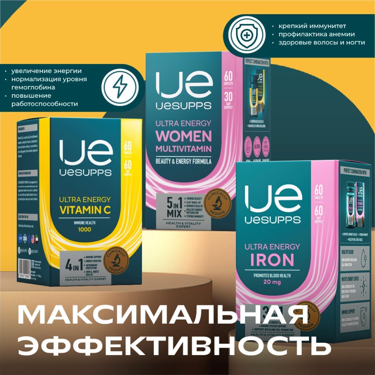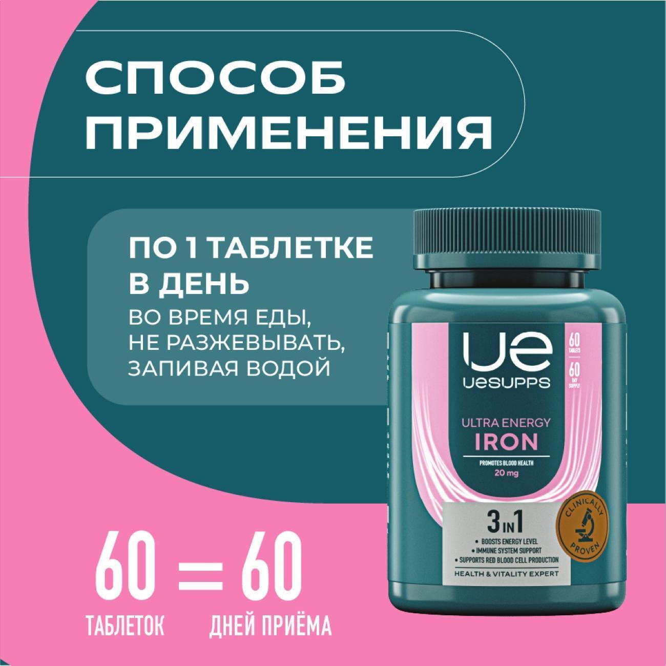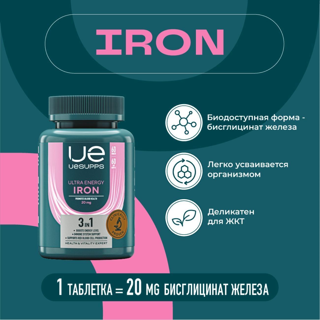 Витаминный комплекс Uesupps Ultra Energy Iron UES020588 — 60 мягких капсул для повышения бодрости, уровня энергии и сил.